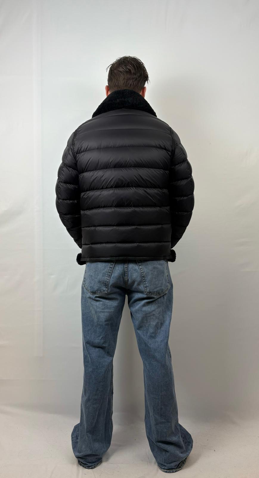 L'abbinamento di due materiali, montone Vera pelle scamosciata nella parte frontale e piumino su braccia e retro rende questo capospalla raffinato ed originale.
