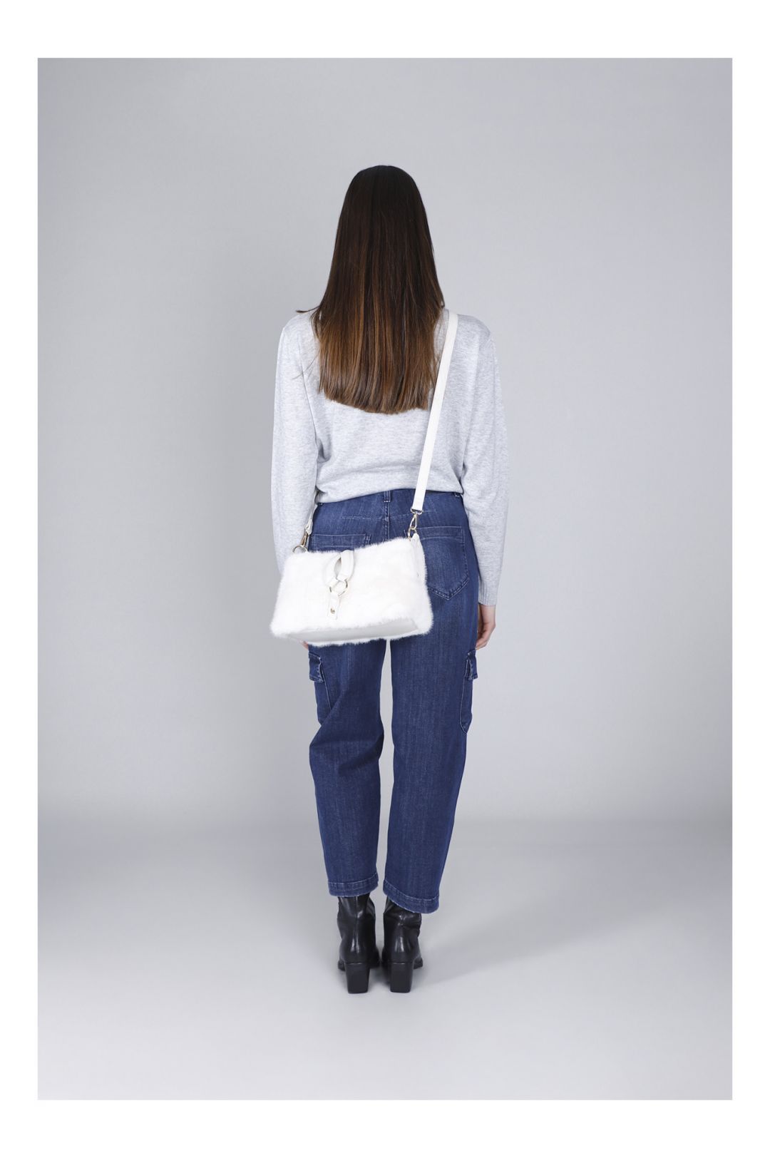 Borsa a spalla in pelliccia sintetica con anello bianco Cafè Noir