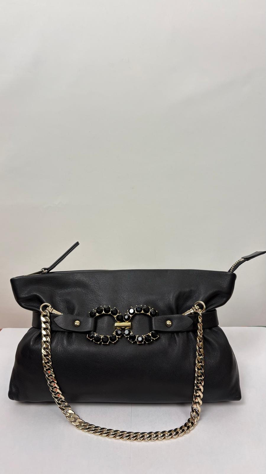 - Realizzata in pelle nera opaca.