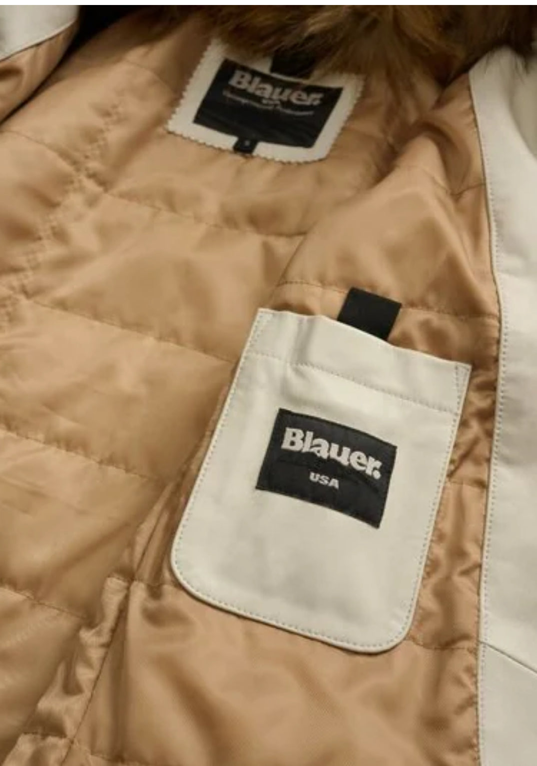 Collo in vera pelliccia di procione removibile tramite bottoni. Capospalla per un look chic e disinvolto.