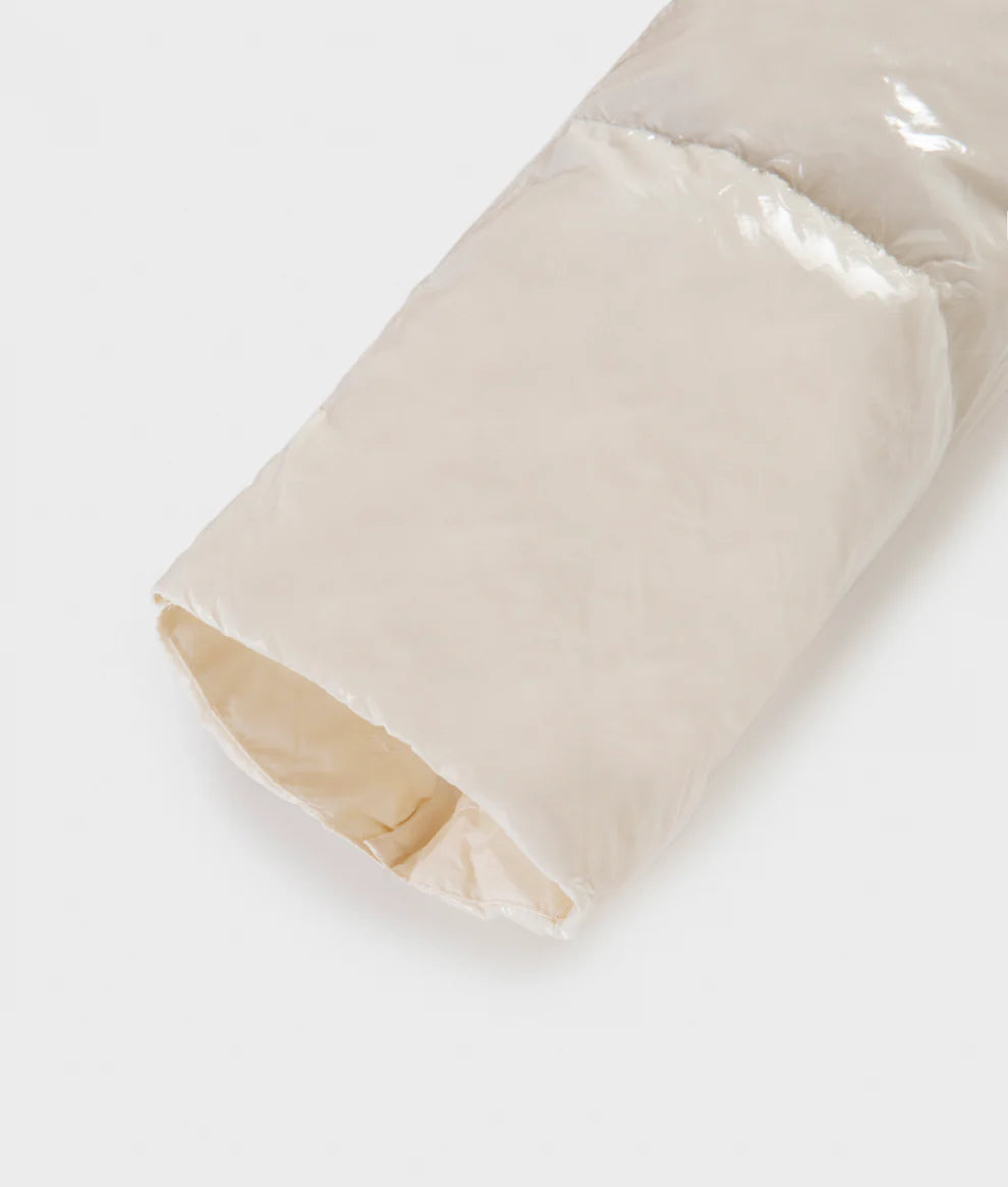 Piumino corto da donna con trapunta orizzontale ampia, vestibilità slim e taglio cropped per un look deciso e contemporaneo. Realizzato in nylon ultra-light con finitura super gloss dall'effetto WET, morbido e performante. Imbottito con piuma 90-10 certificata RDS per garantire calore e leggerezza. Collo in piedi, zip frontale e tasche con chiusura a zip completano il design. Un capo essenziale per affrontare l’inverno con stile e funzionalità.