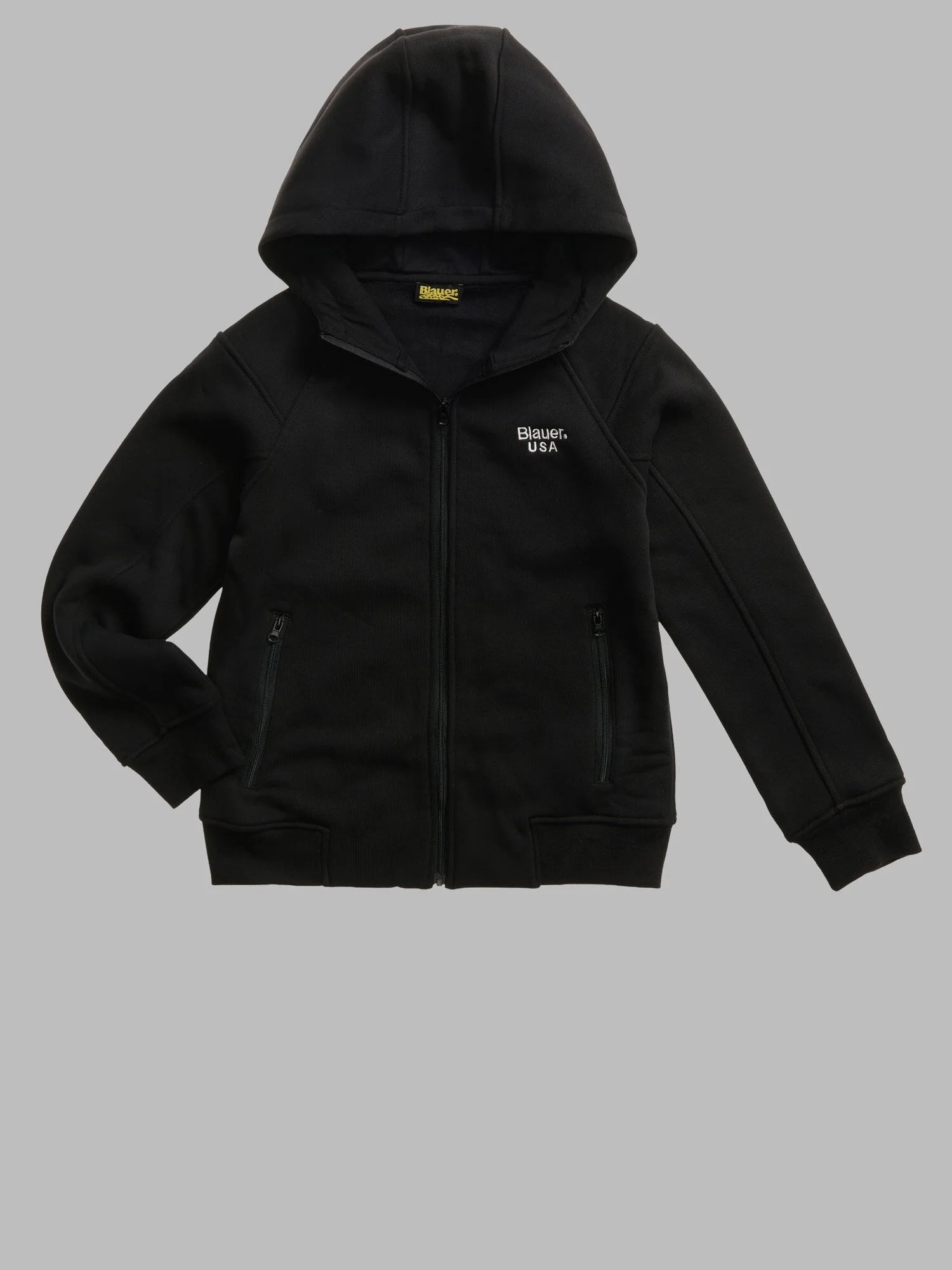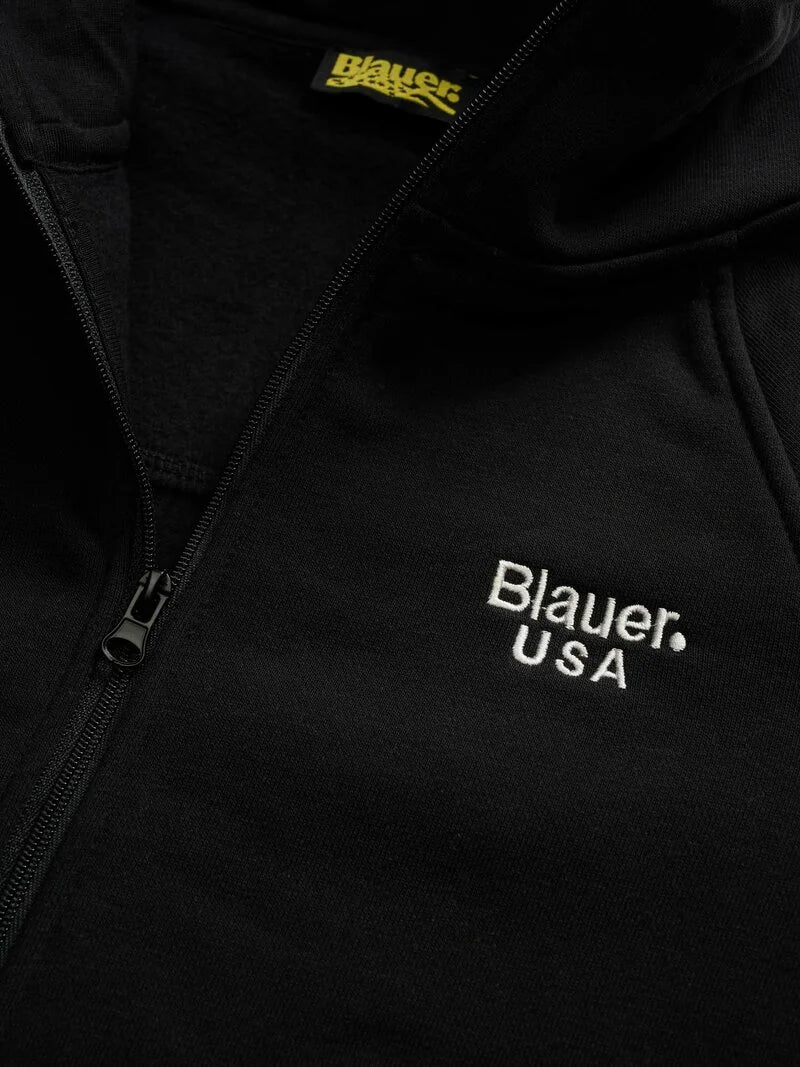 Felpa morbida e comoda chiusa davanti da zip. Decoro con scritta Blauer sul petto.