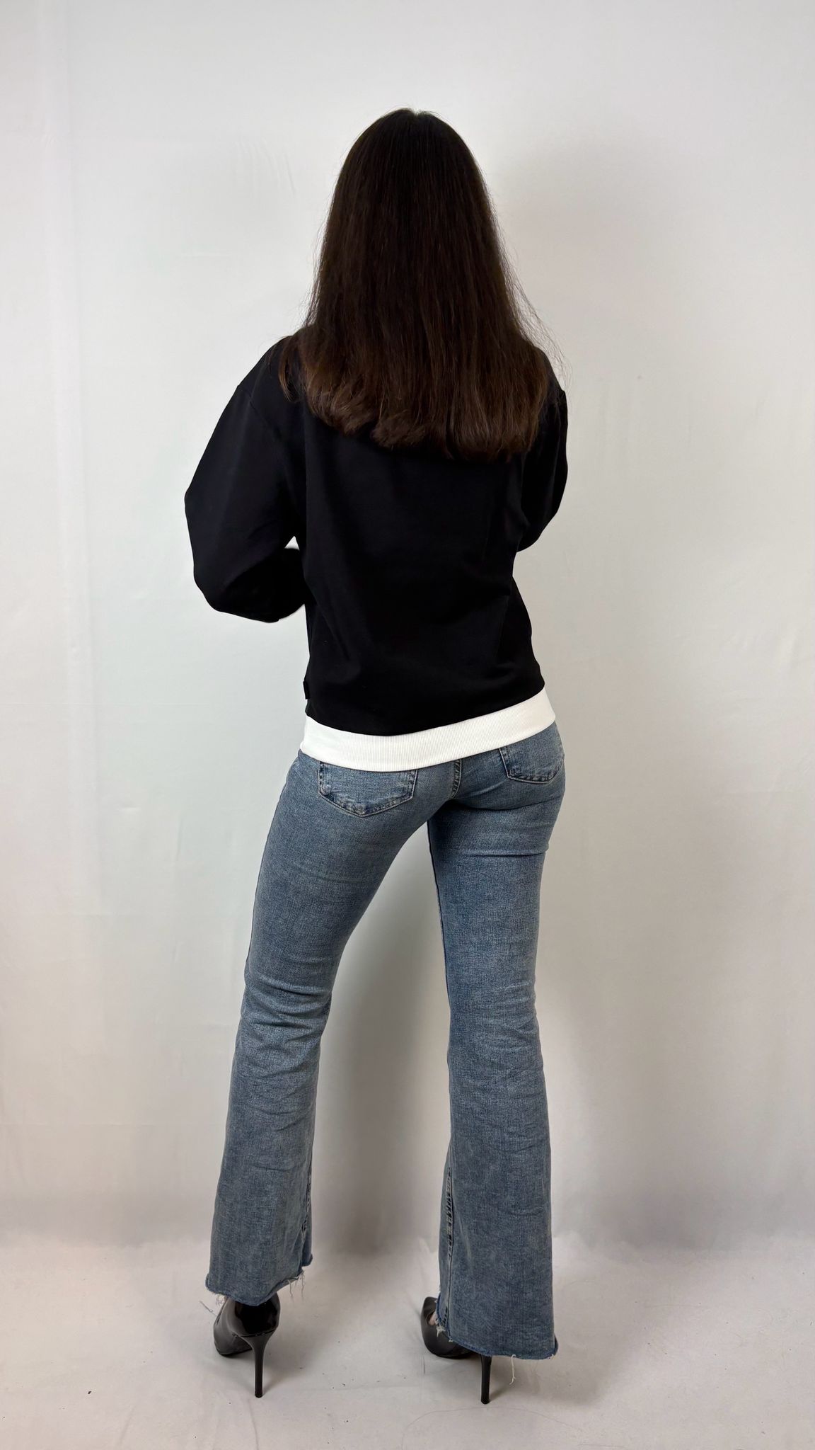 - Maniche lunghe con polsini a costine bianchi