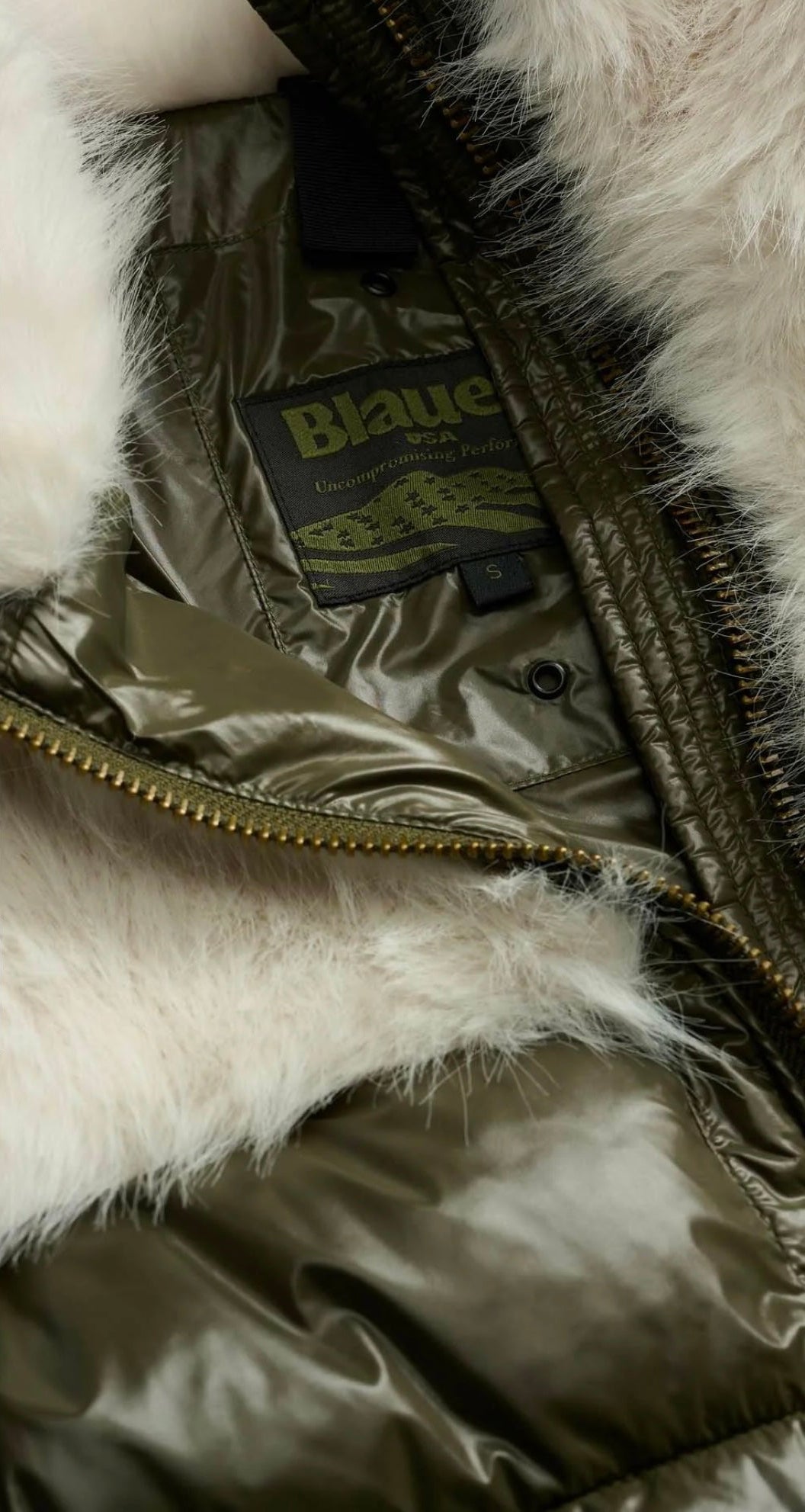 Giubbetto caldo e dallo stile fashion in due tessuti. La parte superiore e il colletto sono in ecopelliccia dal pelo lungo e la parte inferiore è in nylon lucido contrasto colore.