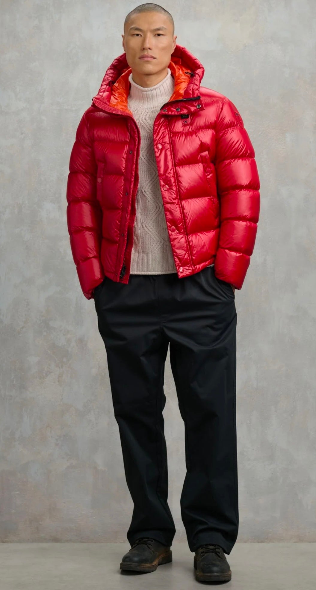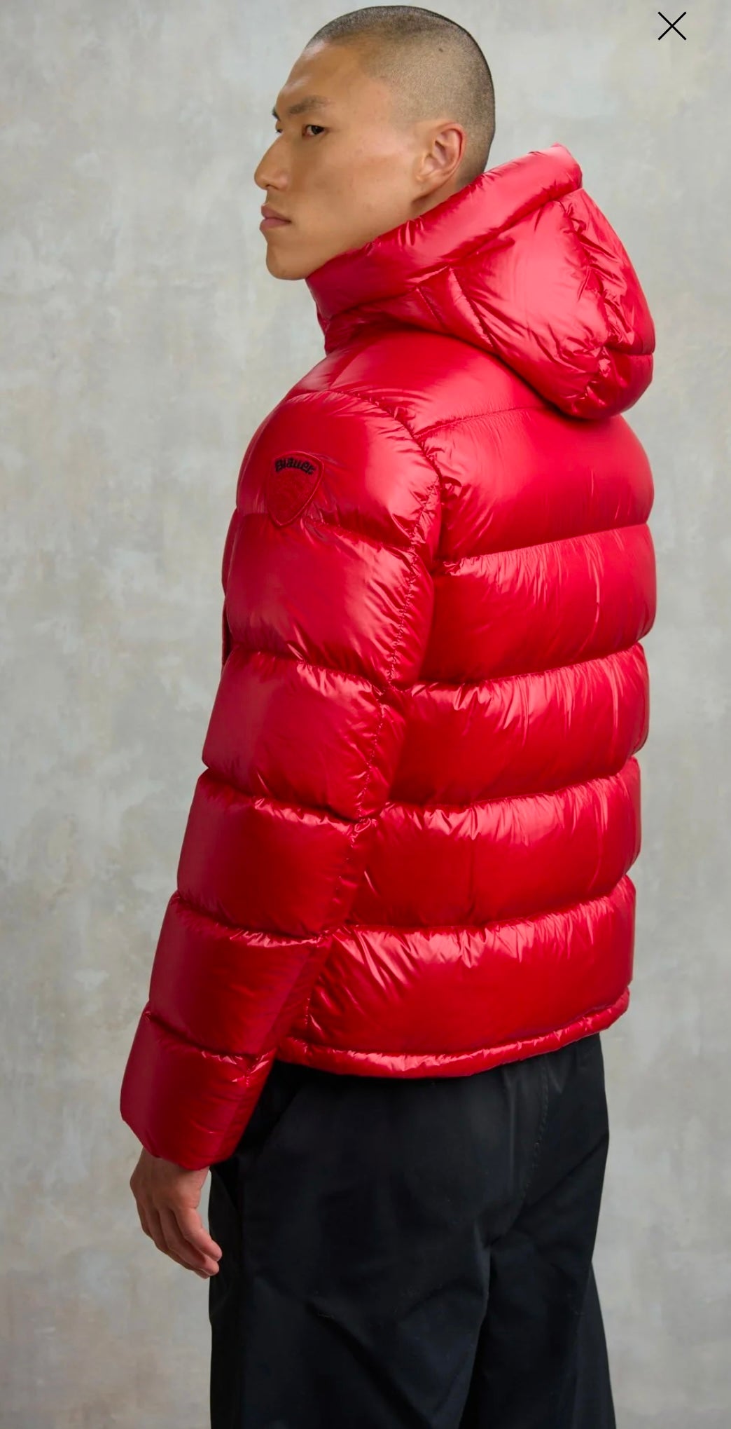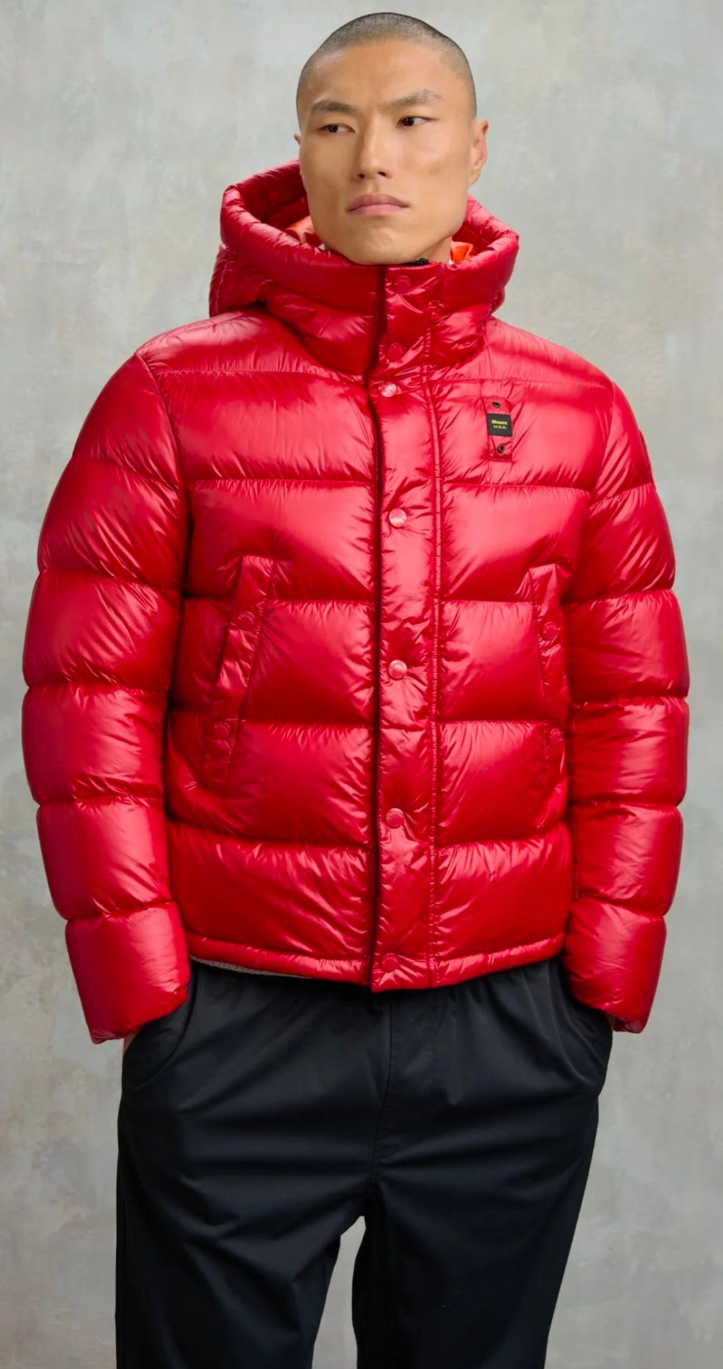 Piumino trapuntato a righe orizzontali ed interno in contrasto colore. Capo iconico Blauer con imbottitura naturale in piuma, calda e non ingombrante.