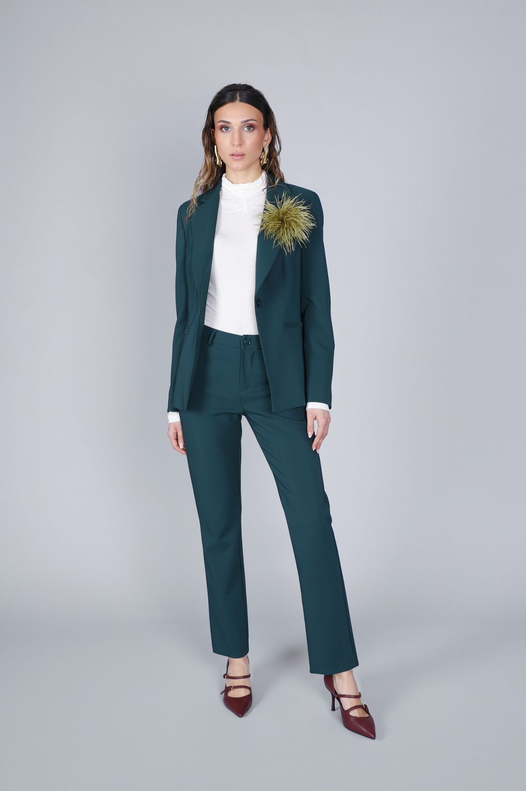 Intramontabile giacca monopetto in tessuto superstretch con collo a lancia e linea puliata. Perfetta per look casual chic garantisce comfort e stile in ogni occasione.