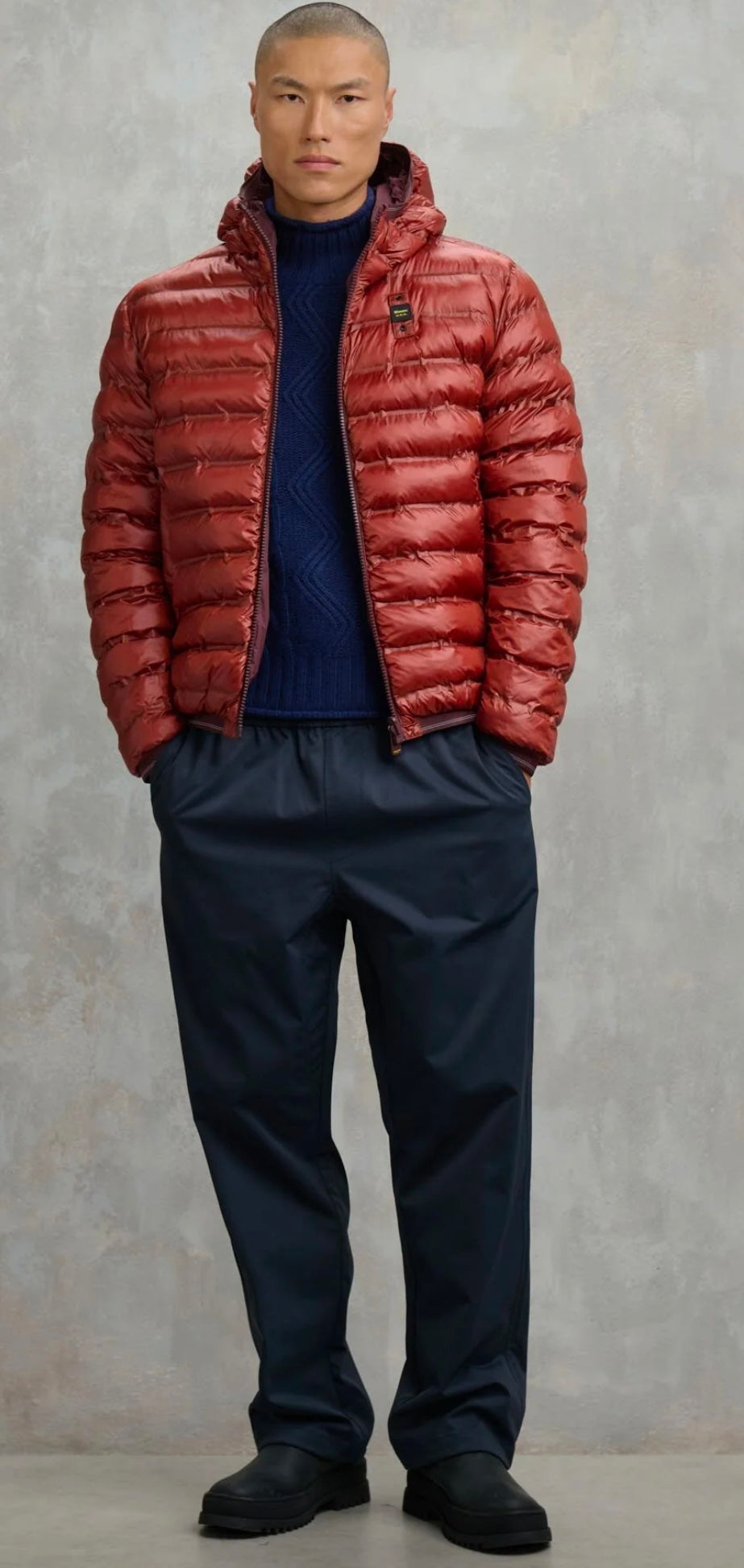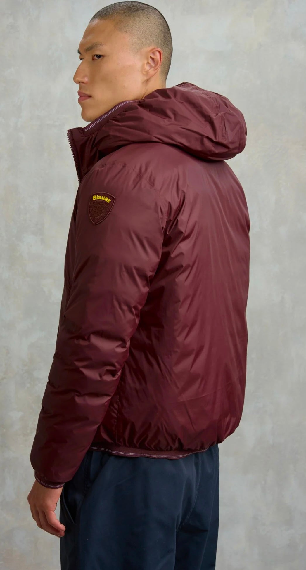 Giubbetto reversibile liscio da una parte e con cuciture nastrate a righe orizzontale dall'altra. Imbottitura sostenibile ottenuta dal riciclo di bottiglie di plastica. Capo in due versioni e due colori per offrire versatilità e alternativa per le diverse occasioni.