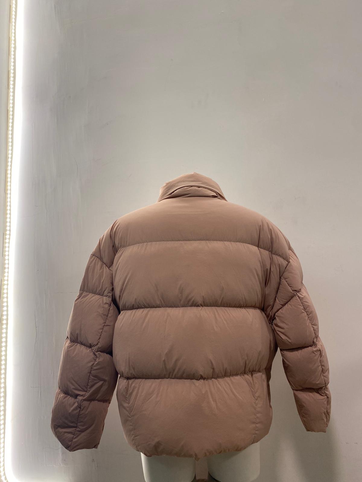 Piumino trapuntato a linee orizzontali con collo alto. Imbottito in vera, morbida e calda piuma dall’effetto nuvola. Un capo vaporoso adatto a chi vuole sentirsi come se fosse avvolto in un abbraccio.