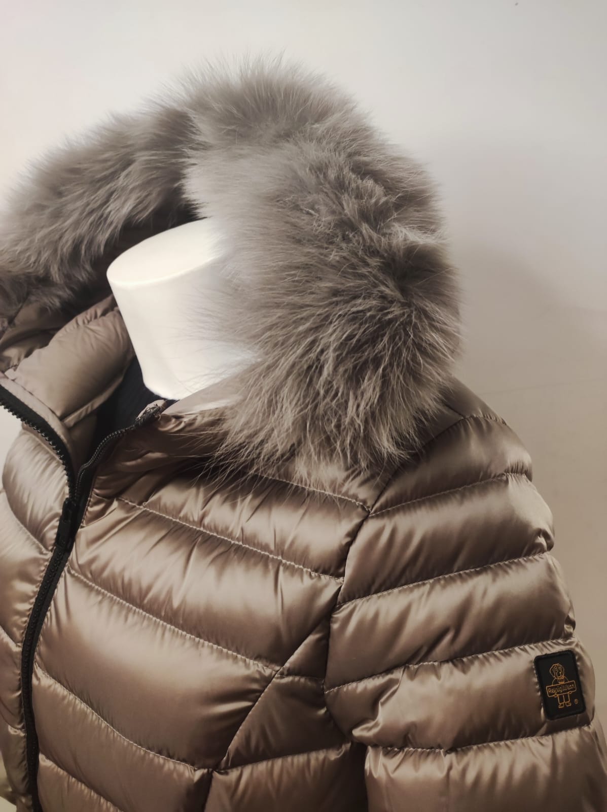 Piumino invernale da Donna lunghezza ¾, con pelliccia, estremamente comodo, pratico e confortevole, tra i capi invernali più amati dalle nostre clienti. Imbottitura ad iniezione diretta in 100% piuma 90-10. Esterno composto in nylon raso dall’aspetto molto femminile ed attuale. Un must-have per il guardaroba invernale.