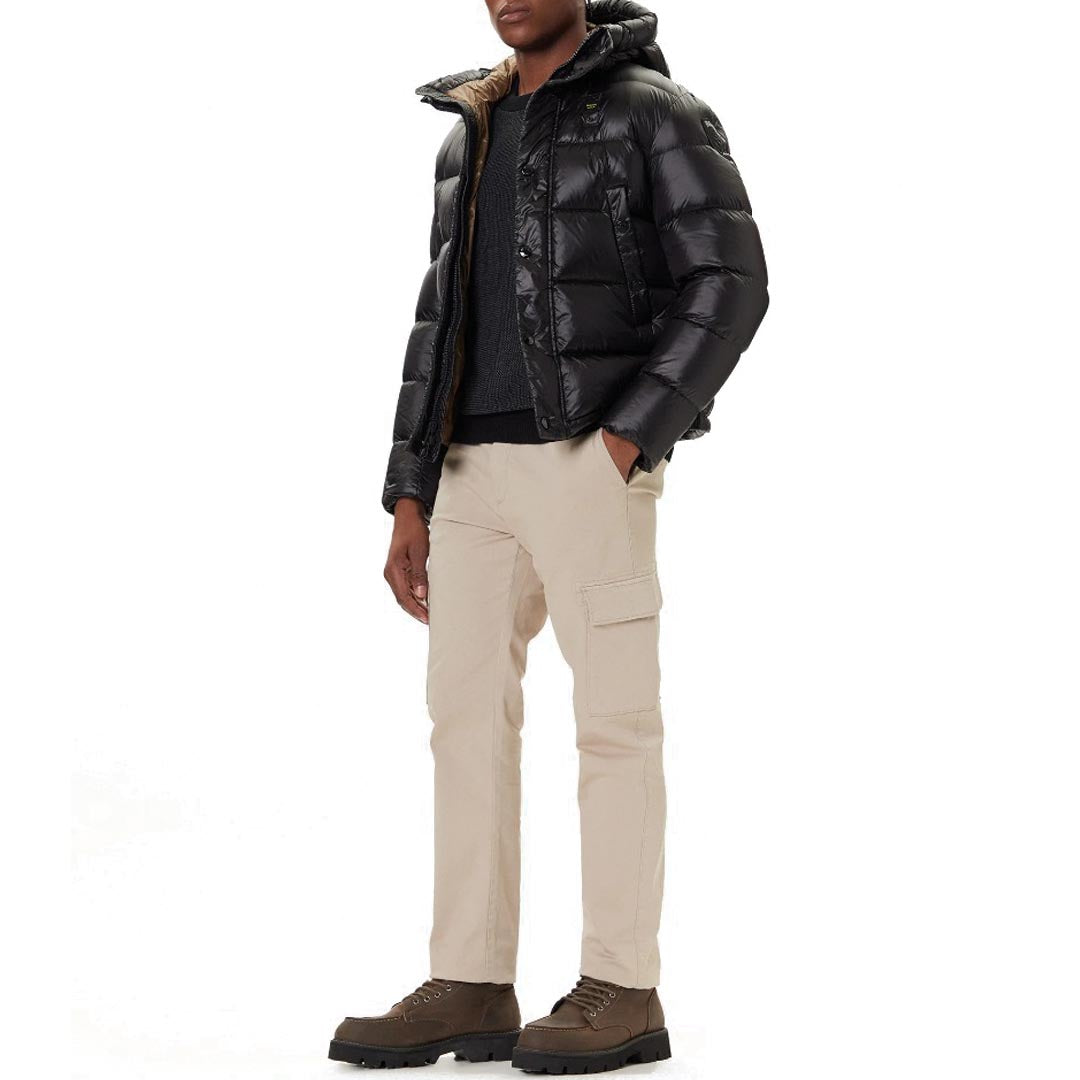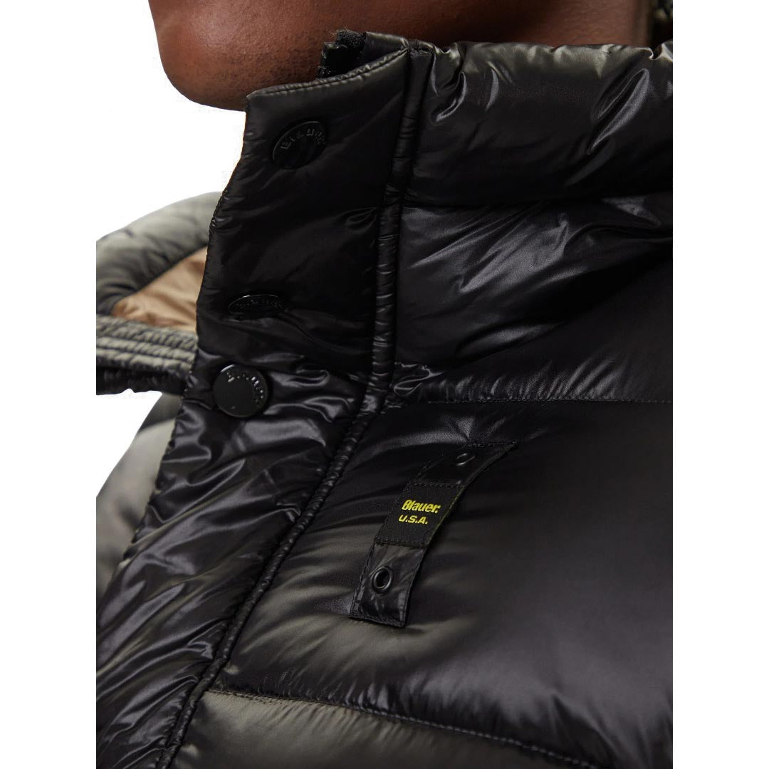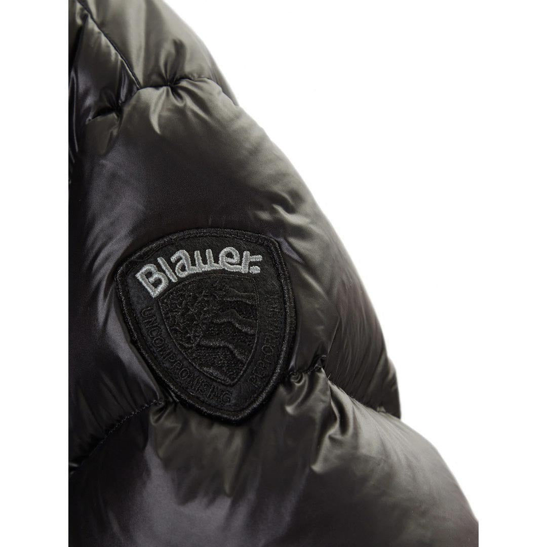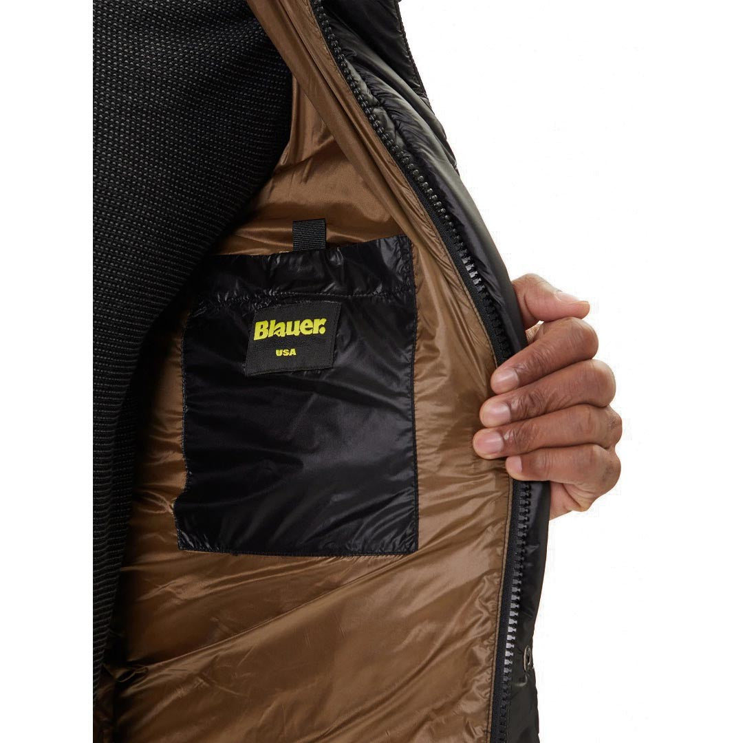 Piumino trapuntato a righe orizzontali ed interno in contrasto colore. Capo iconico Blauer con imbottitura naturale in piuma, calda e non ingombrante.