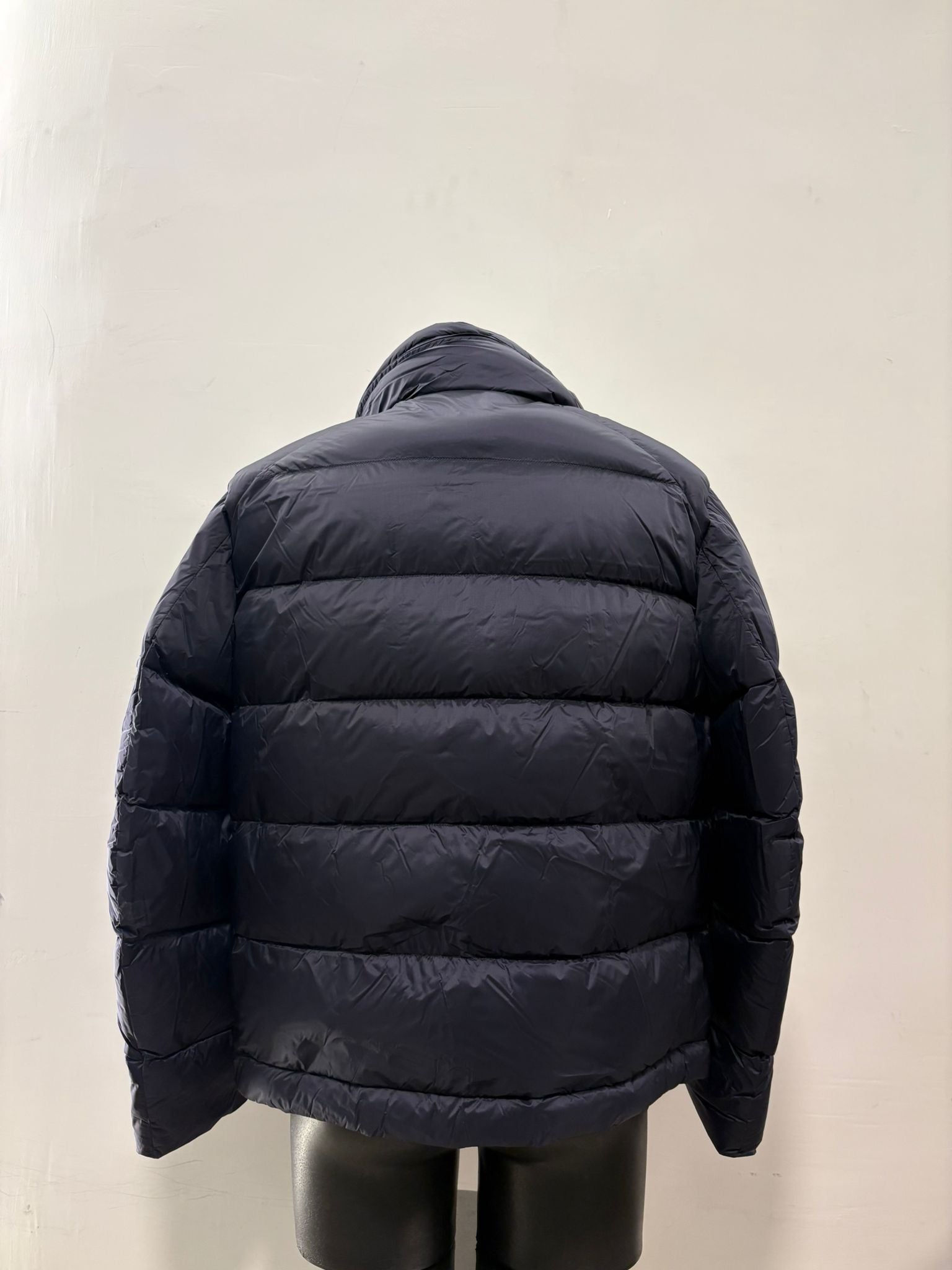Piumino lucido con cappuccio leggero logato Blauer, ripiegato nel colletto e nascosto da doppie zip. Impuntura a righe orizzontali e chiusura con zip bicolore che lo rendono unico ed esclusivo.