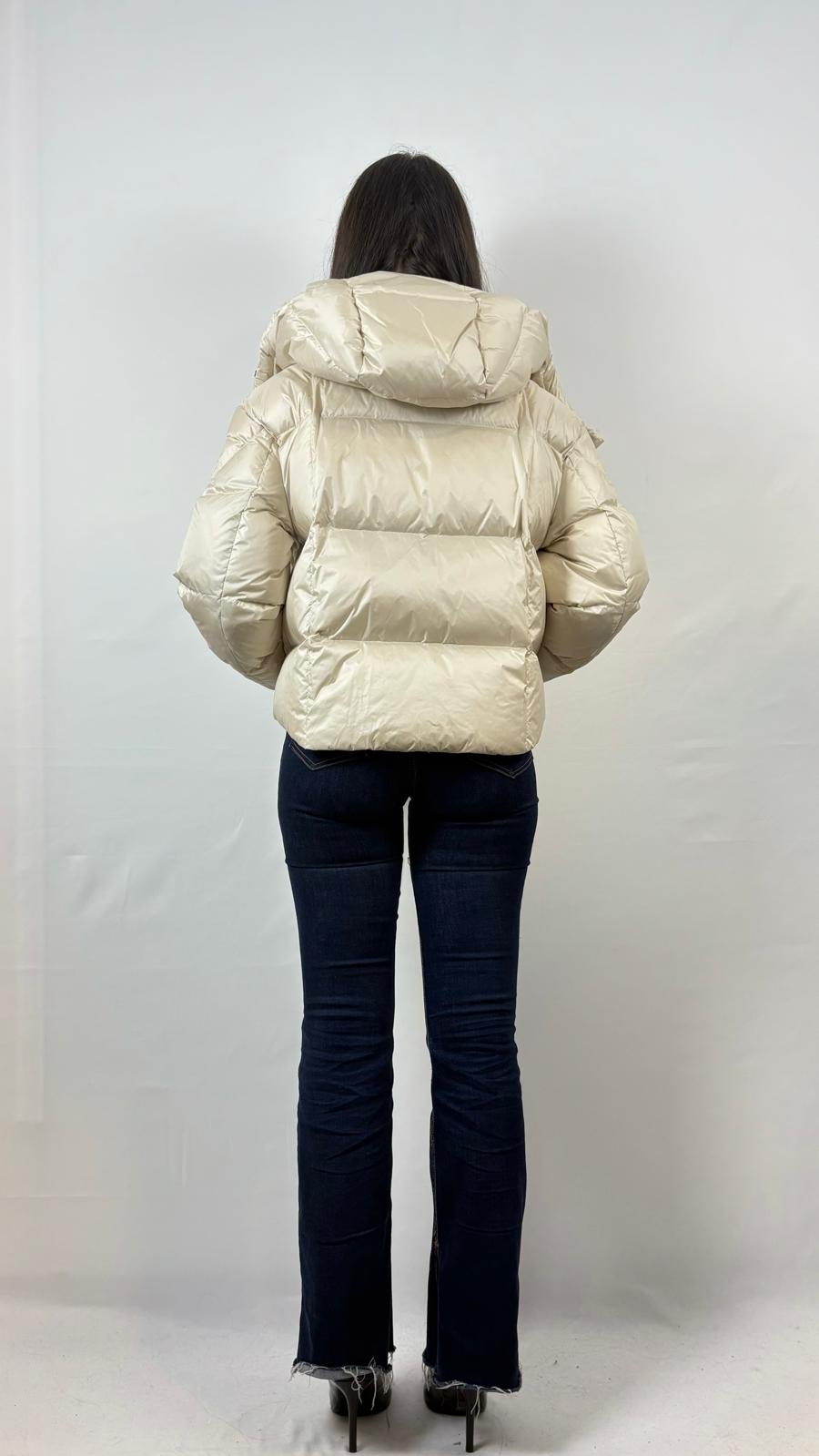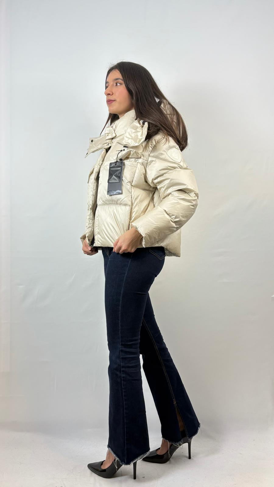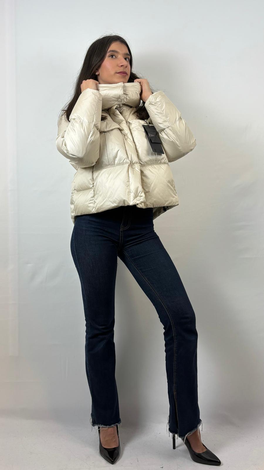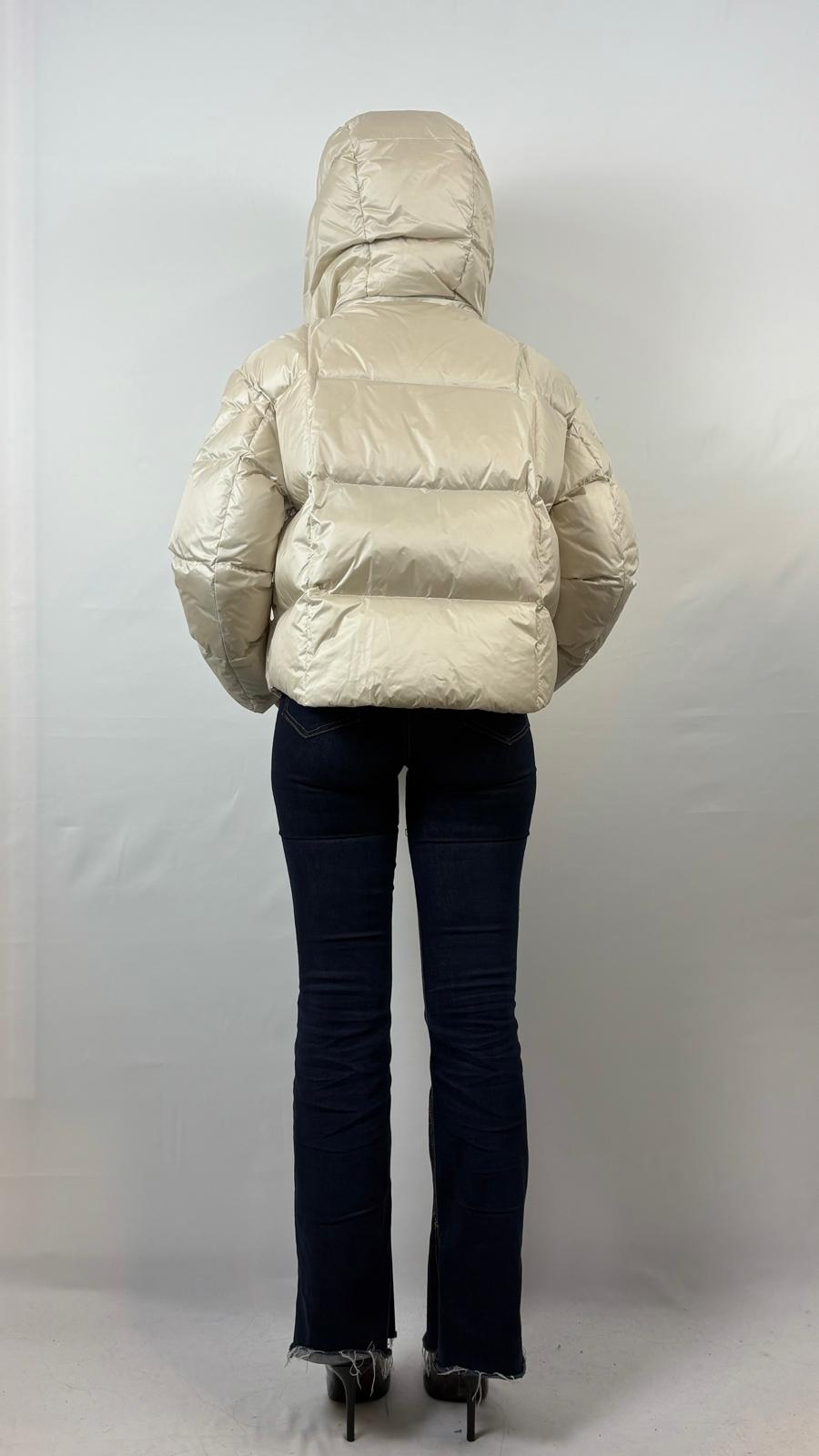 Piumino trapuntato a linee orizzontali con imbottitura calda e non ingombrante. Modello corto per chi desidera un capo giovane e alla moda