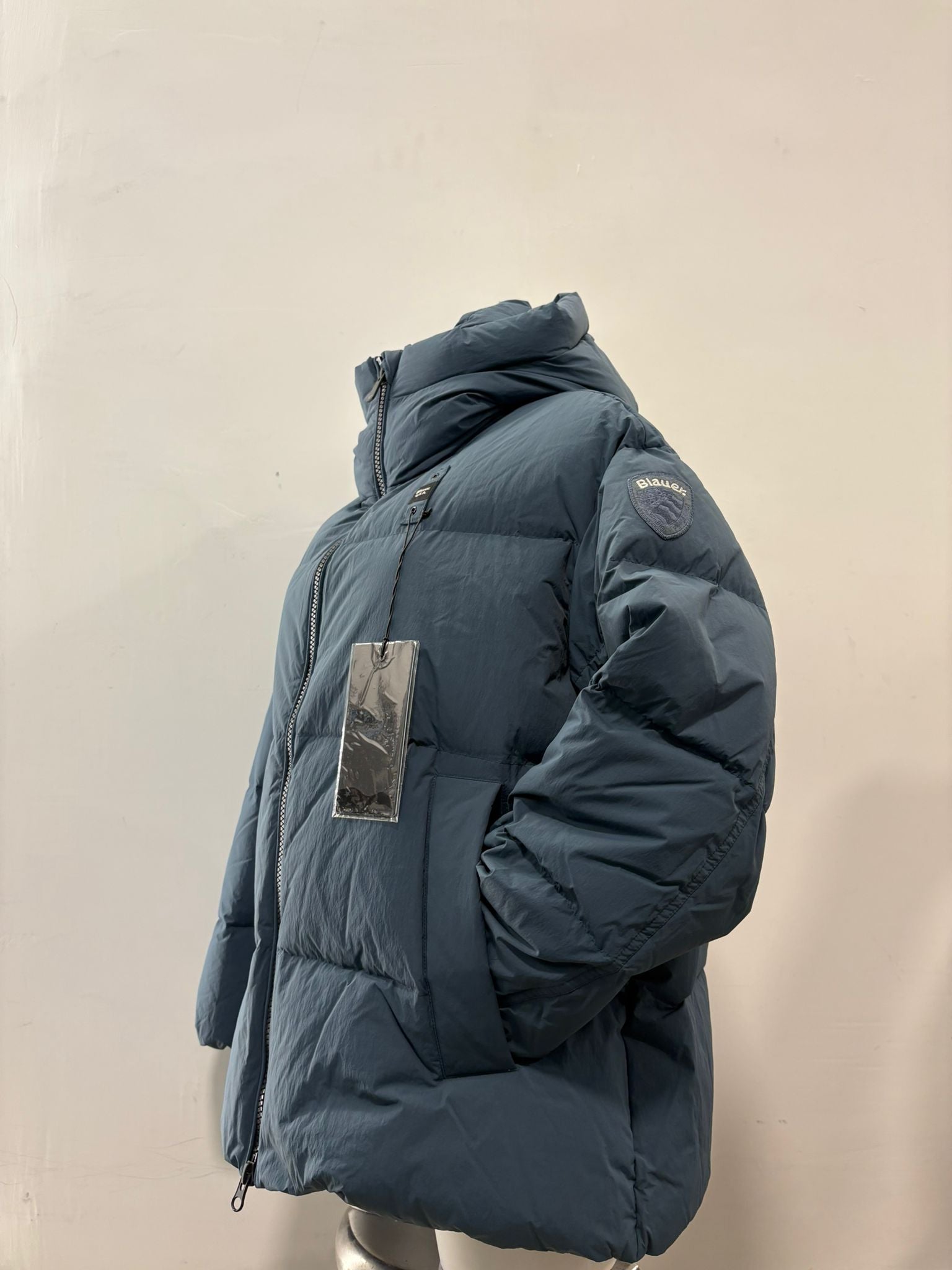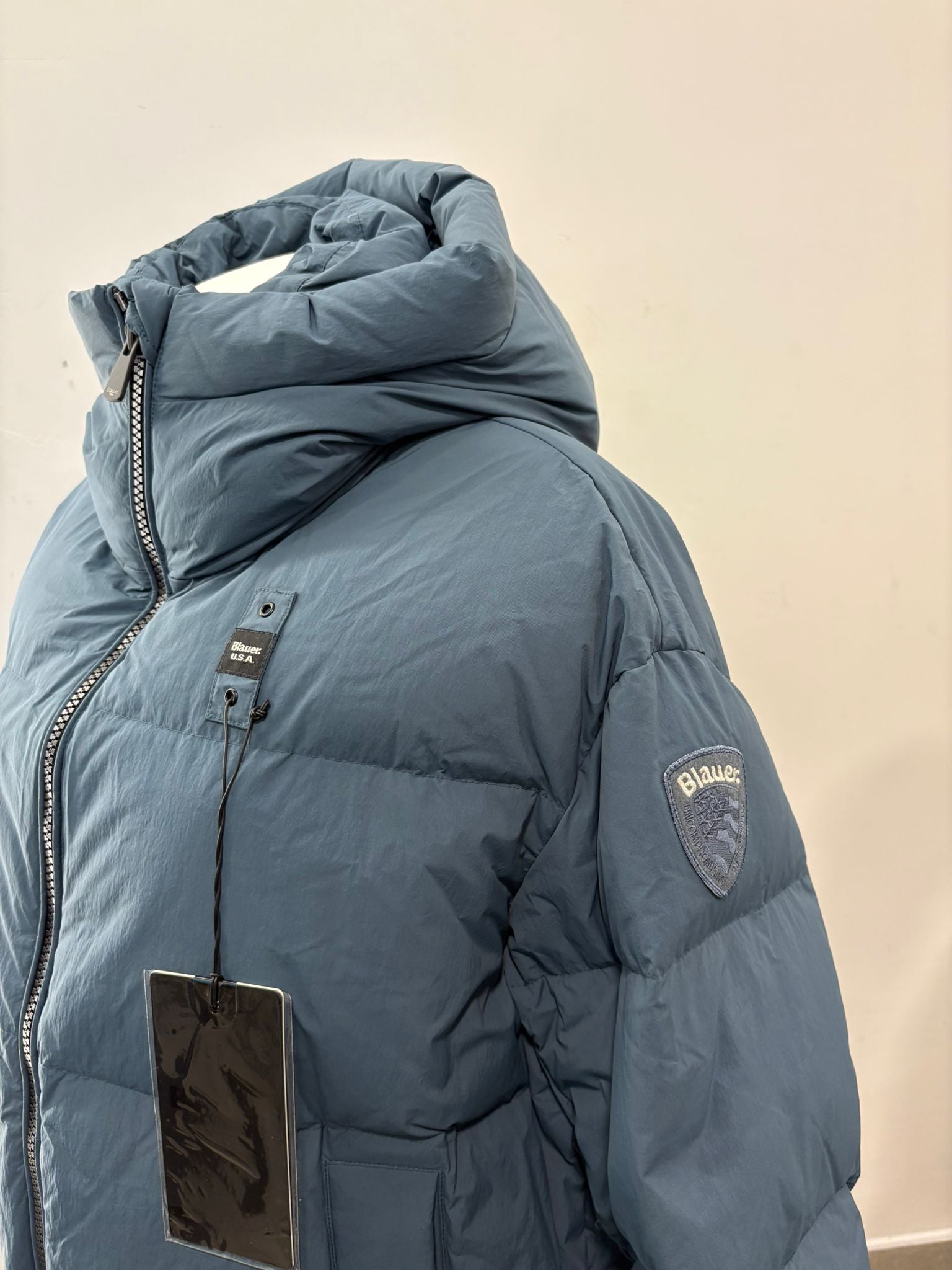 Piumino invernale impunturato a righe alte orizzontali con imbottitura calda e non ingombrante. Tessuto in nylon dall’effetto cotone al tatto per donare un tocco ricercato ed elegante.