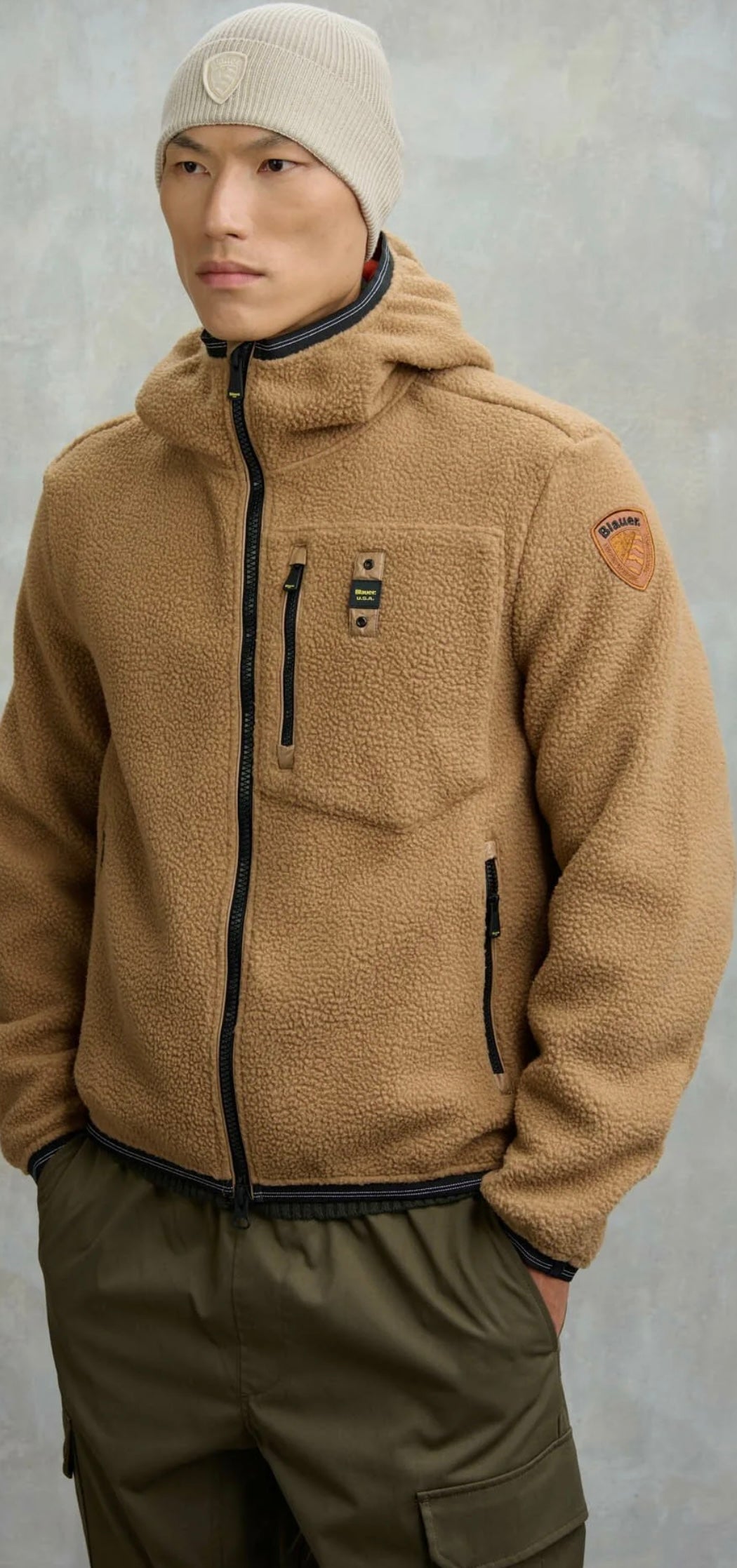 Giubbetto in pile dall'effetto pelliccia con dettagli in nylon in tono. Capo comodo che dona praticità, calore e libertà di movimento. Comoda taschina con zip applicata sul petto.