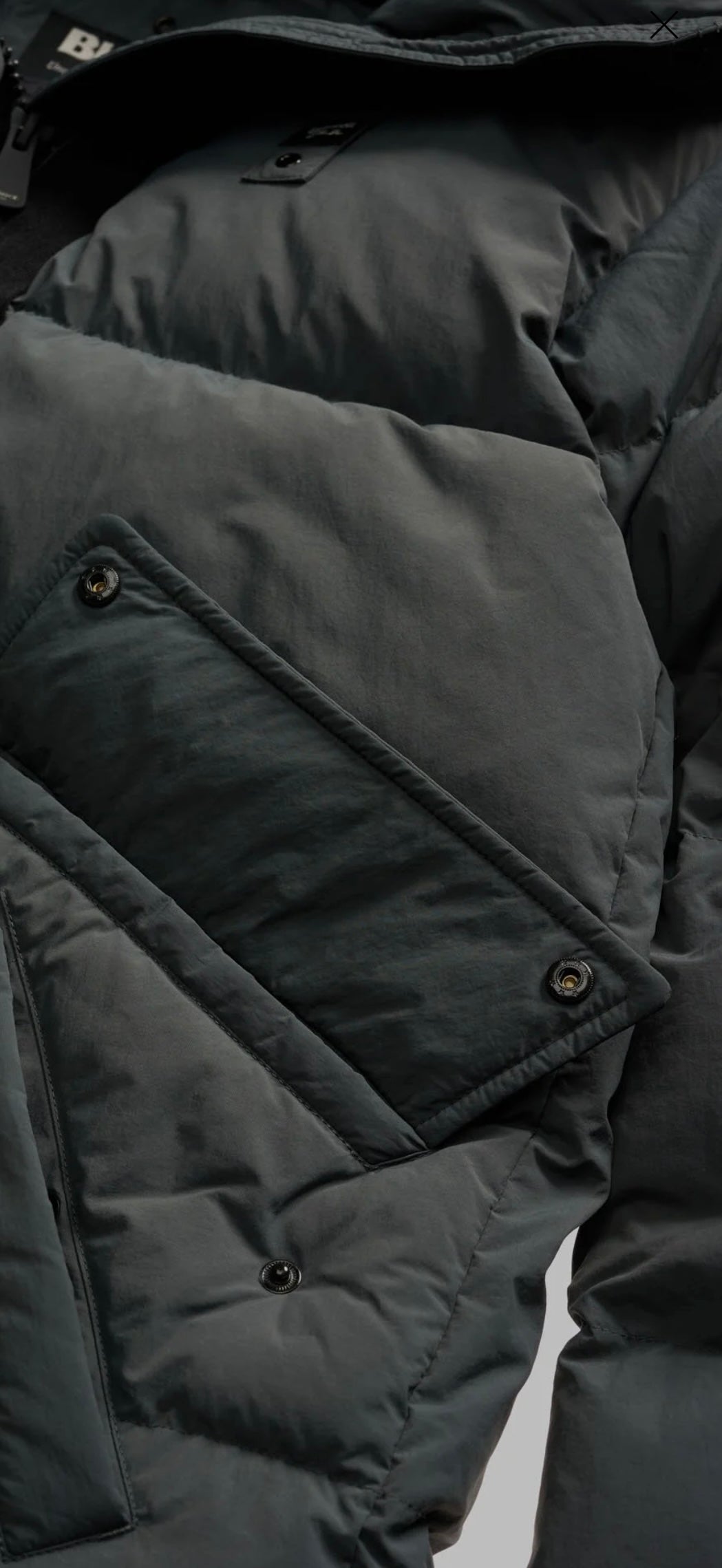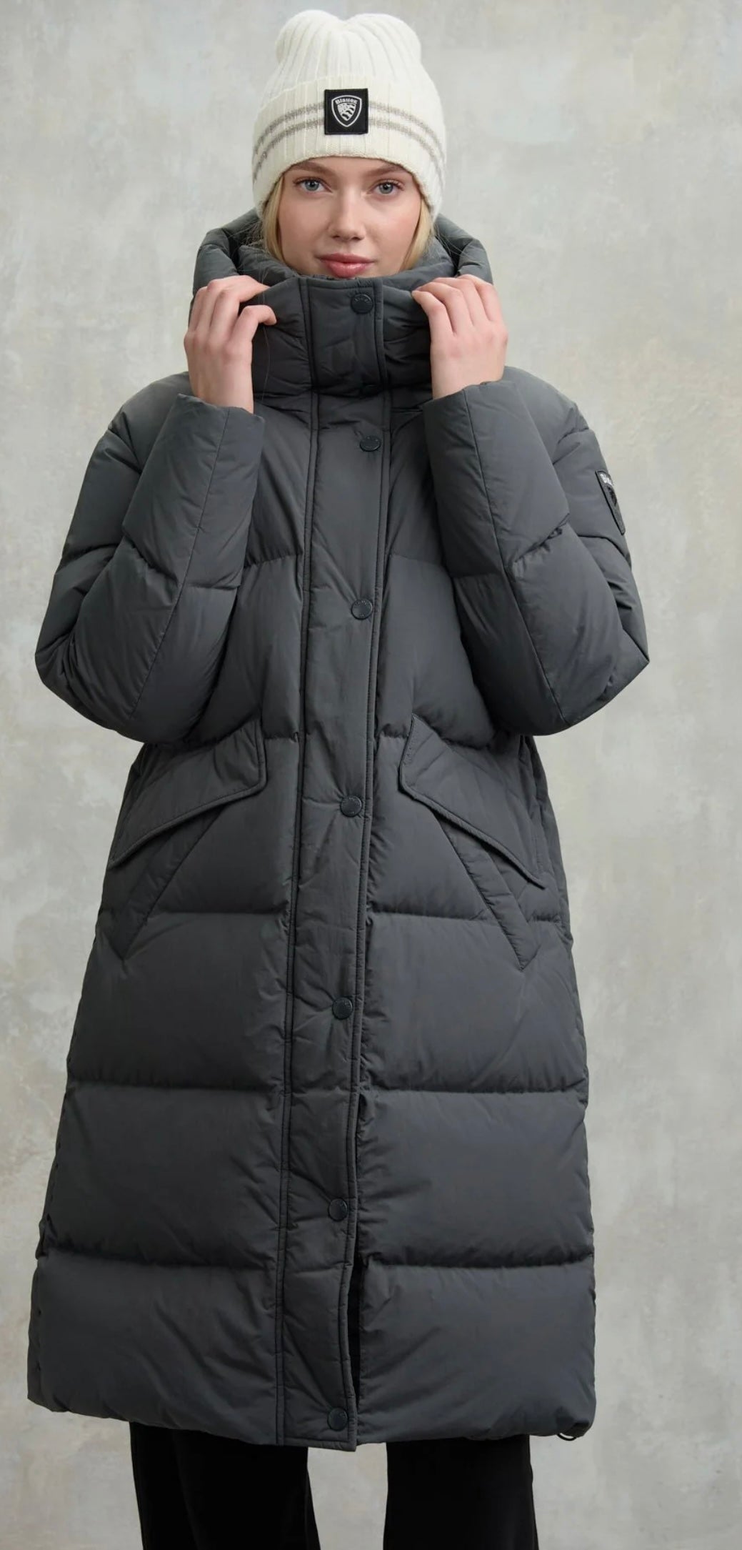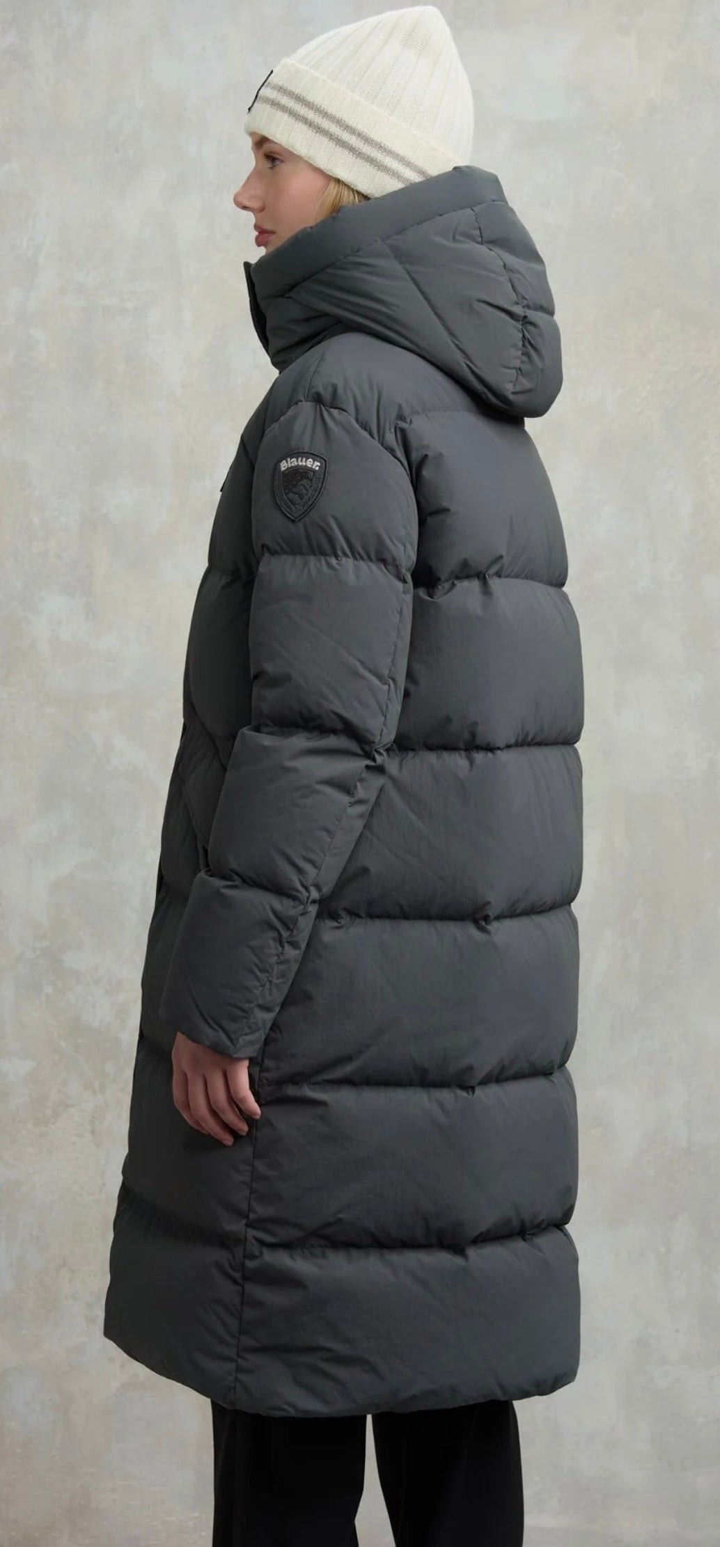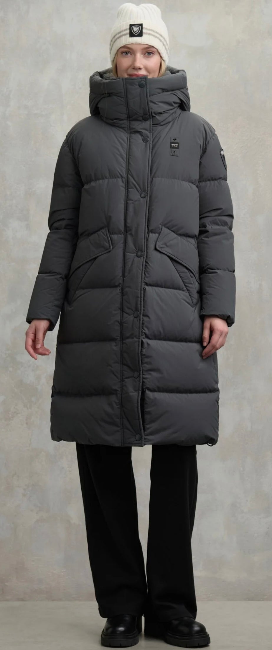 Piumino idrorepellente impunturato a righe orizzontali con collo alto. Capo con imbottitura naturale leggera, calda e non ingombrante, e dai colori fashion.