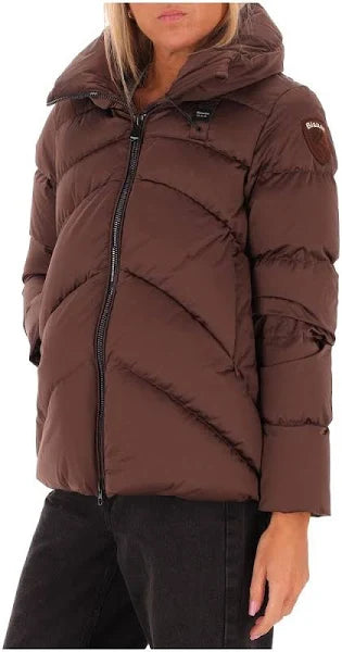 Piumino da donna realizzato in tela tecnica trapuntata. Collo alto imbottito, apertura frntale con zip. Passante iconico, tasche con zip invisibili, patch con logo sulla manica. Imbottitura in piuma. Tessuto esterno 100% poliestere Imbottitura 90% piumino 10% piuma