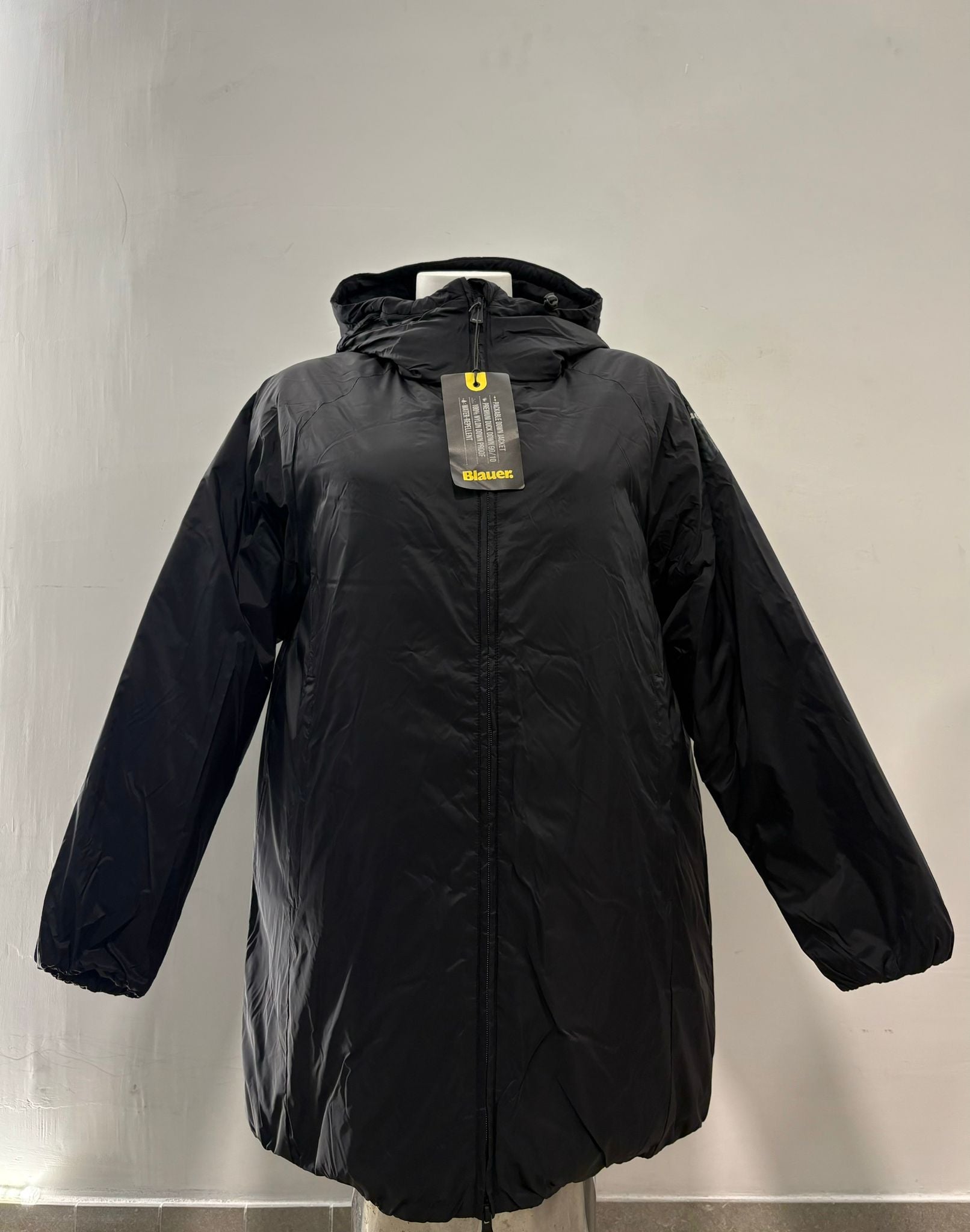 Giubbetto invernale lungo in tessuto liscio con manica raglan, cappuccio ed interno impunturato ad onde orizzontali. Caratterizzano questo capo la possibilità di impacchettarlo nel taschino per poter portarlo comodamente nello zaino.
