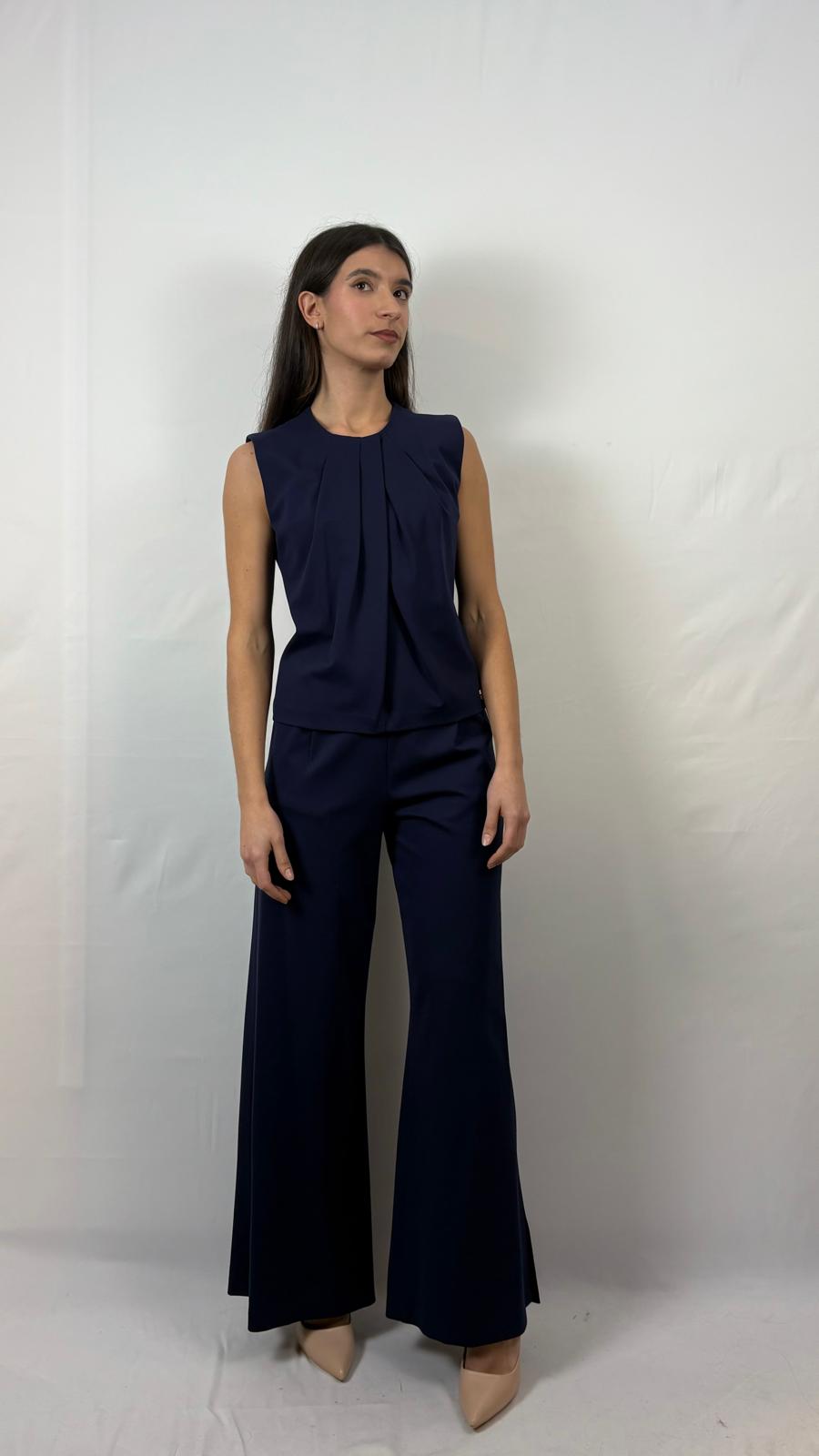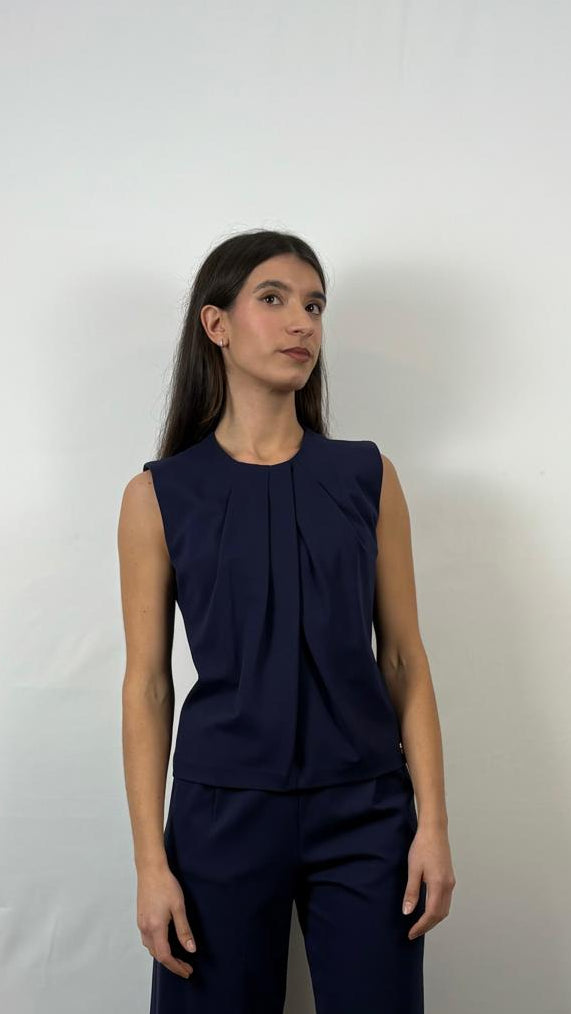 Top smanicato in viscosa elasticizzata con pieghe sullo scollo per un look elegante e raffinato.