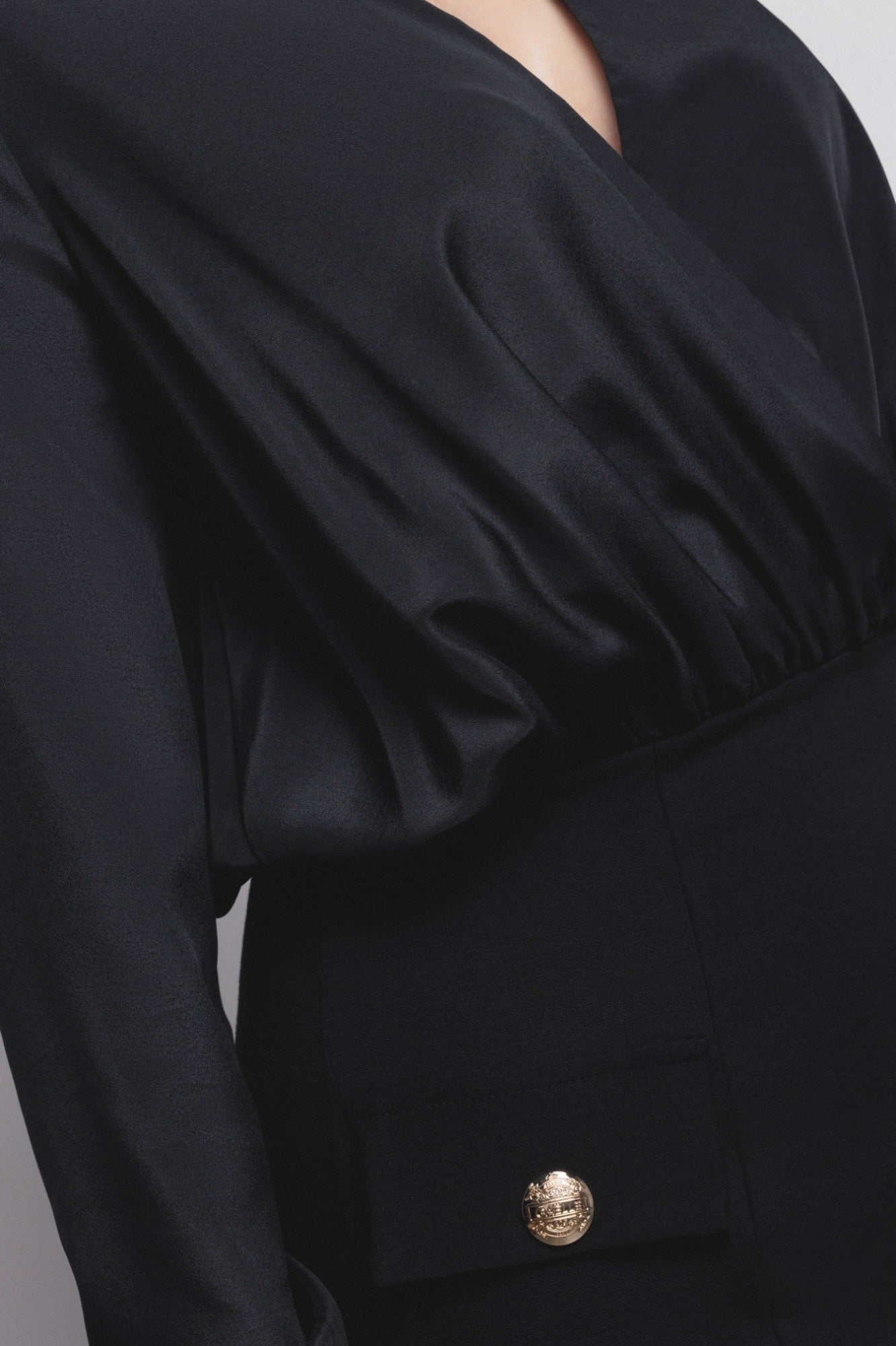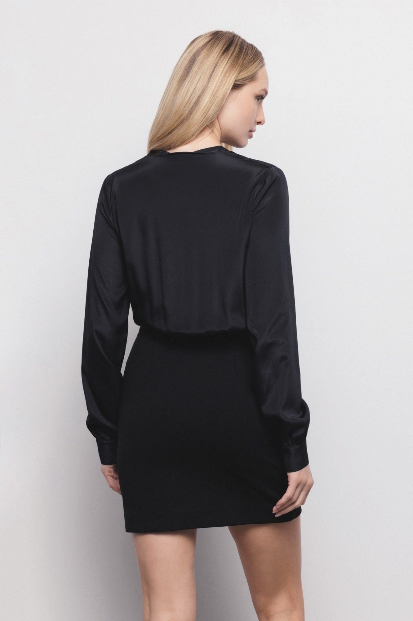 Abito All In One Con Blusa Incrociata Sul Davanti In Punto Milano E Crepe De Chine