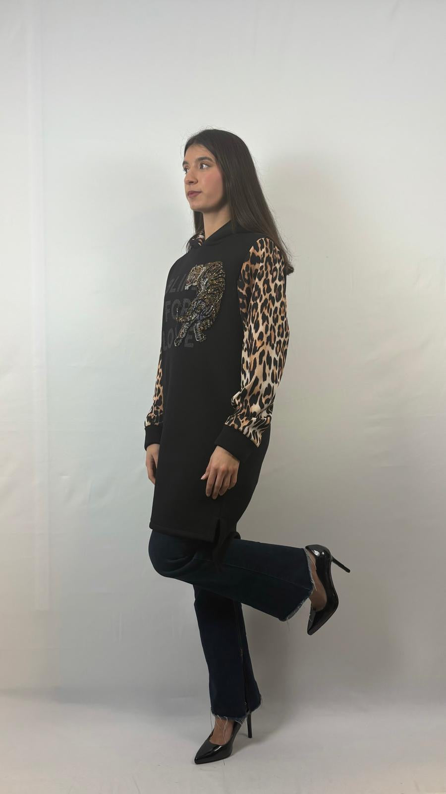dettaglio anteriore scritta e tigre con brillanti in rilievo.