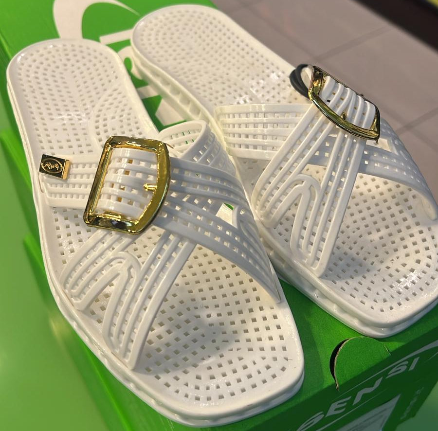 Ciabatta sensi due fasce con fibbia oro