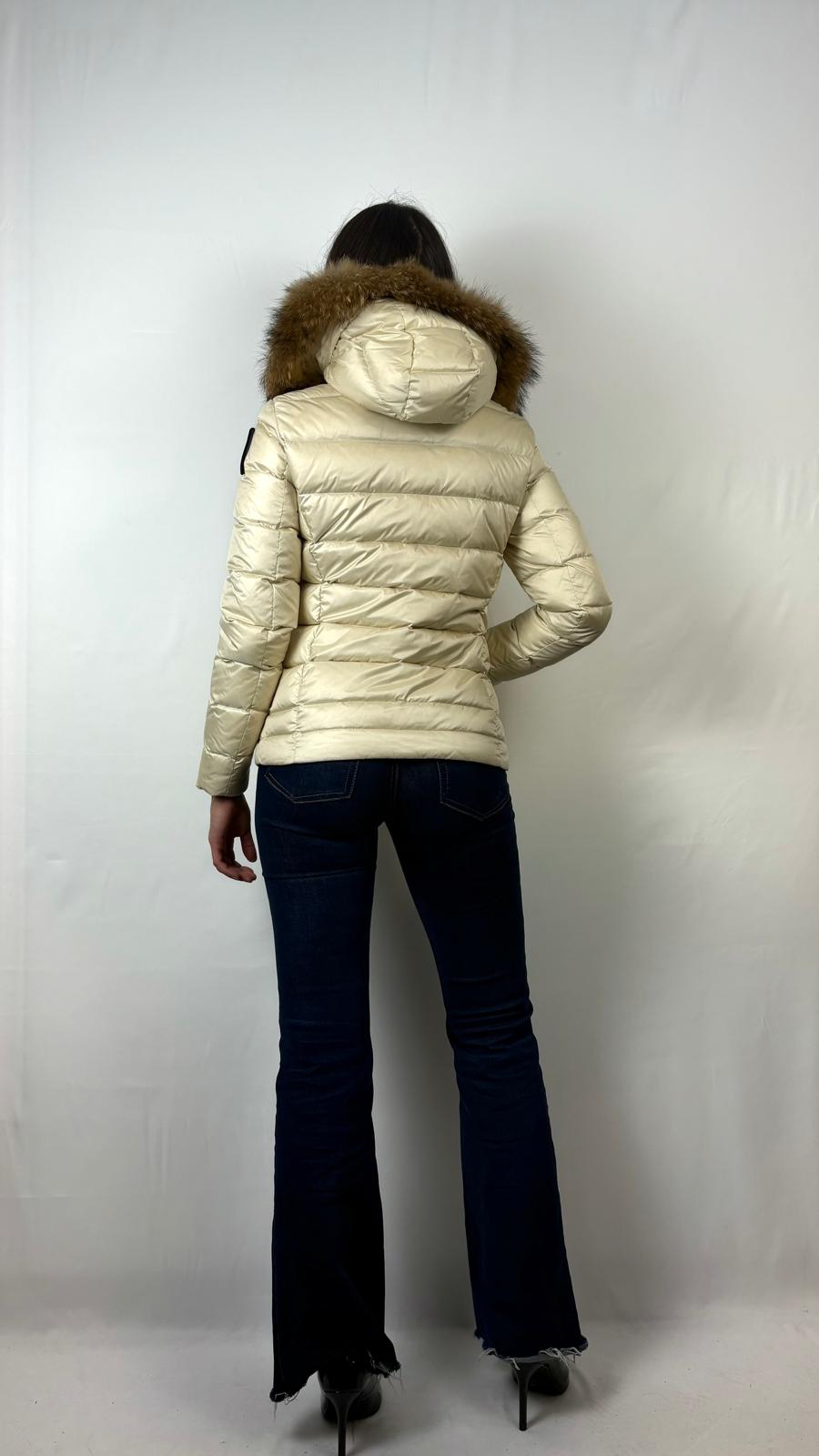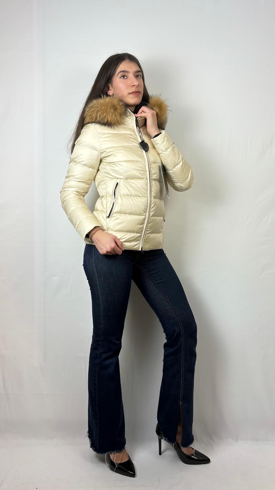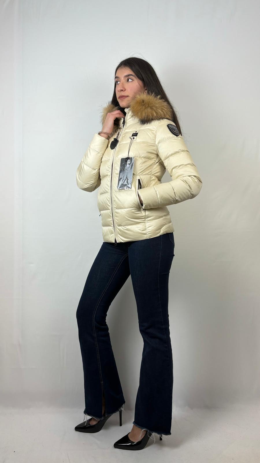 Piumino idrorepellente trapuntato a righe orizzontali. Capo con imbottitura leggera, calda e non ingombrante, dai colori fashion e dal taglio che risalta il punto vita.