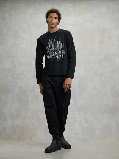 Maglietta manica lunga con stampa in stile digitale e logo sul davanti in contrasto colore