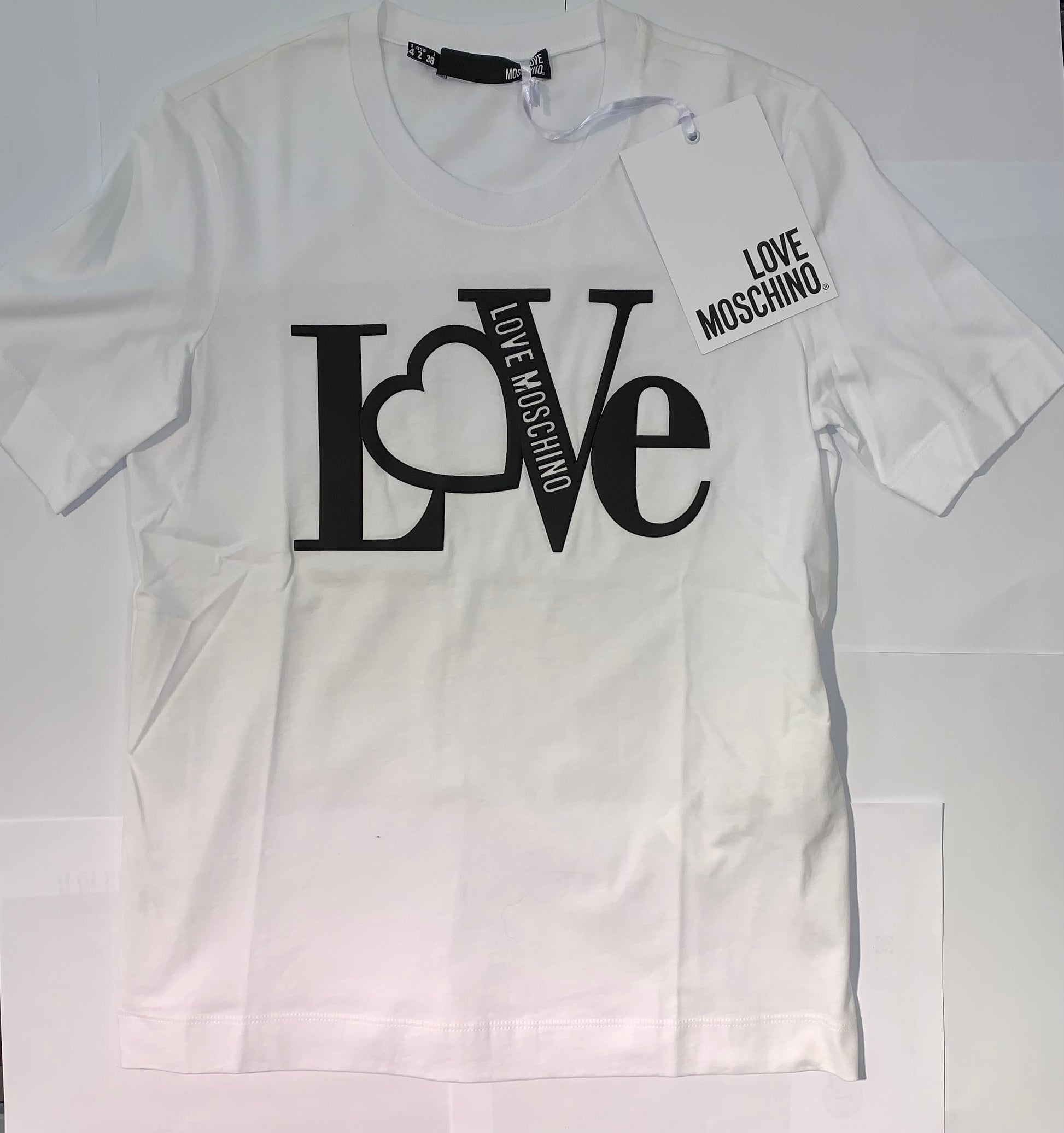 t-shirt Moschino donna bianca con dettaglio nero in gomma.