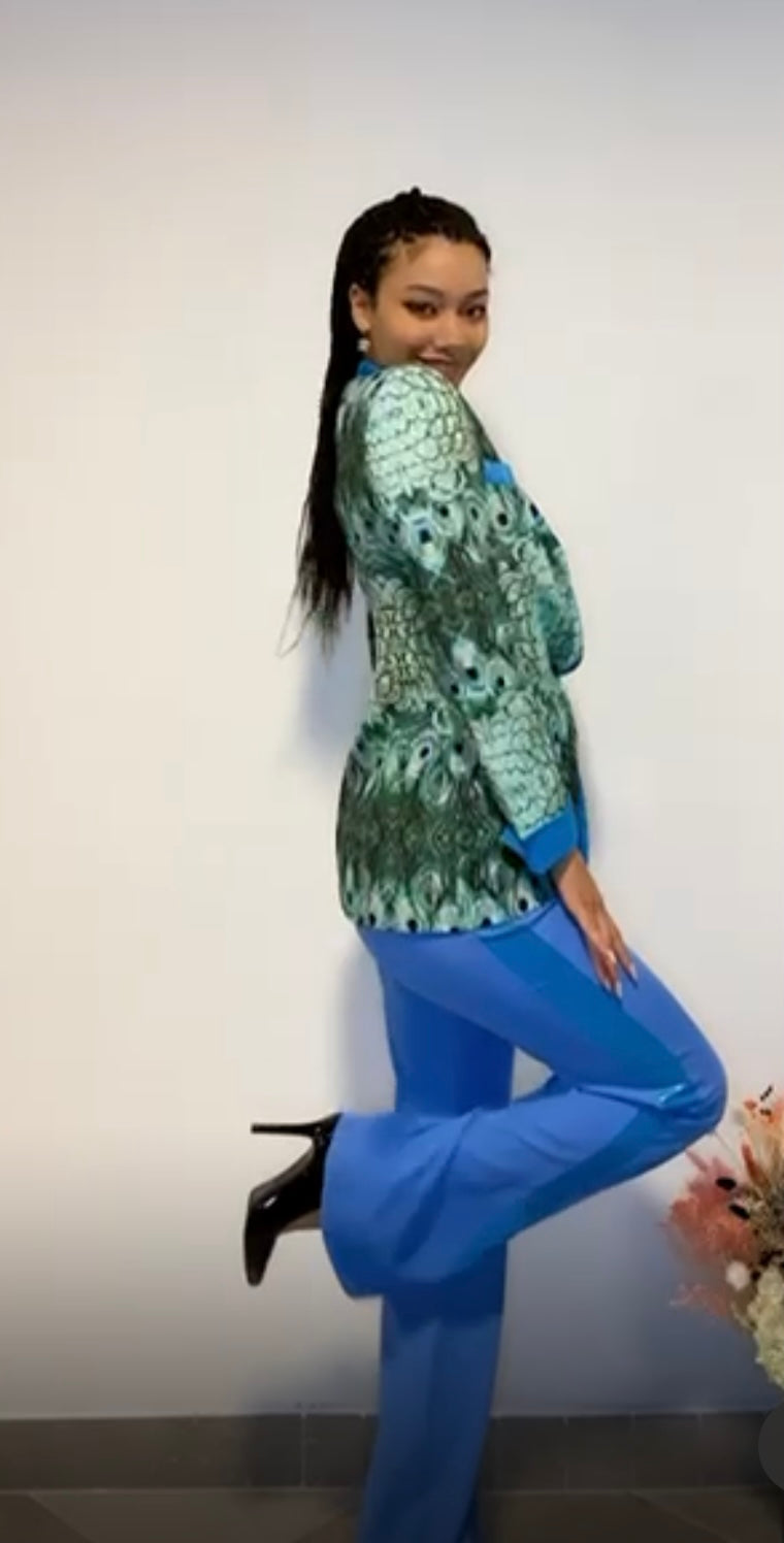 Tailleur Giacca cangiante fantasia pavone +pantalone zampa